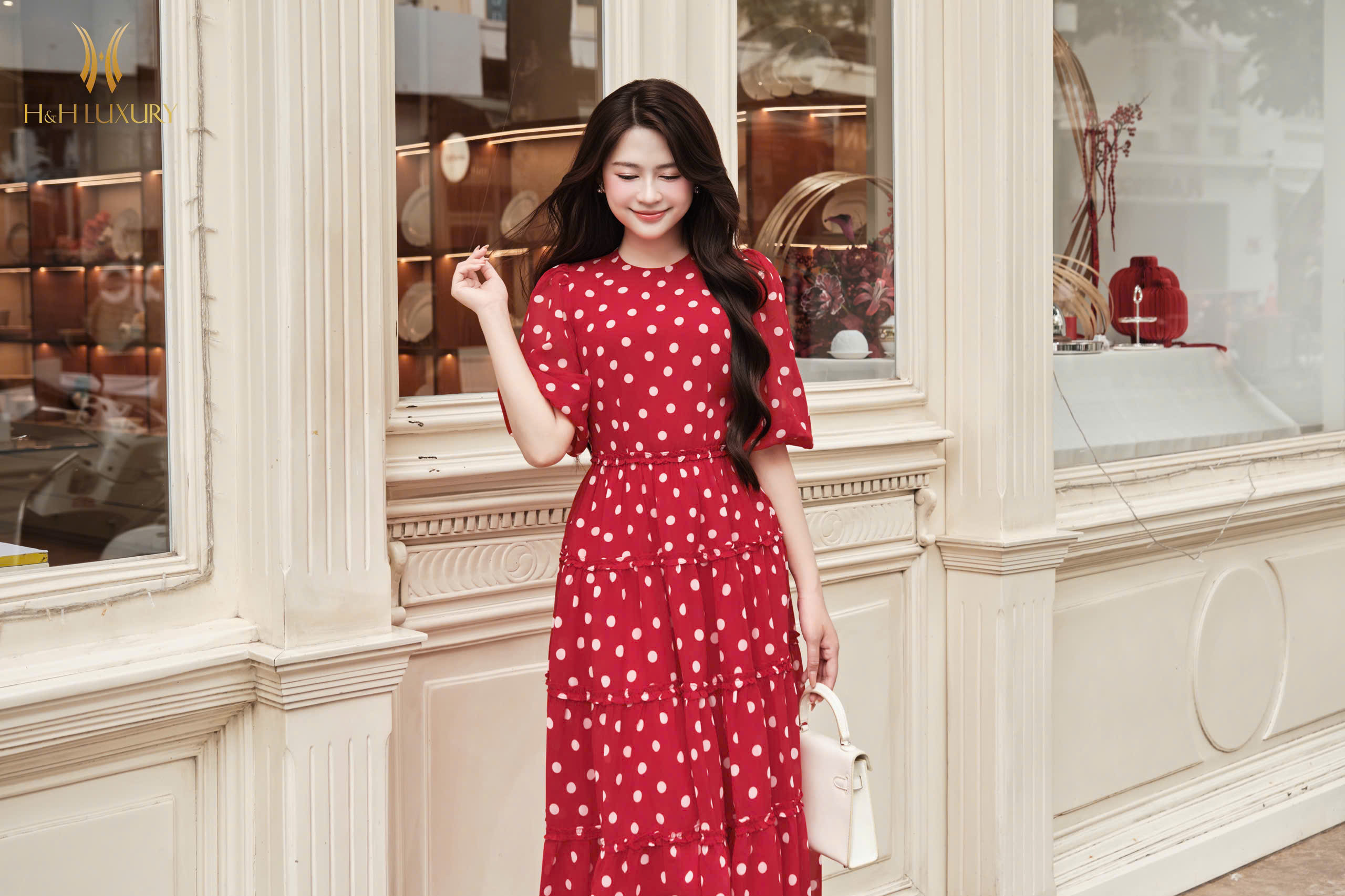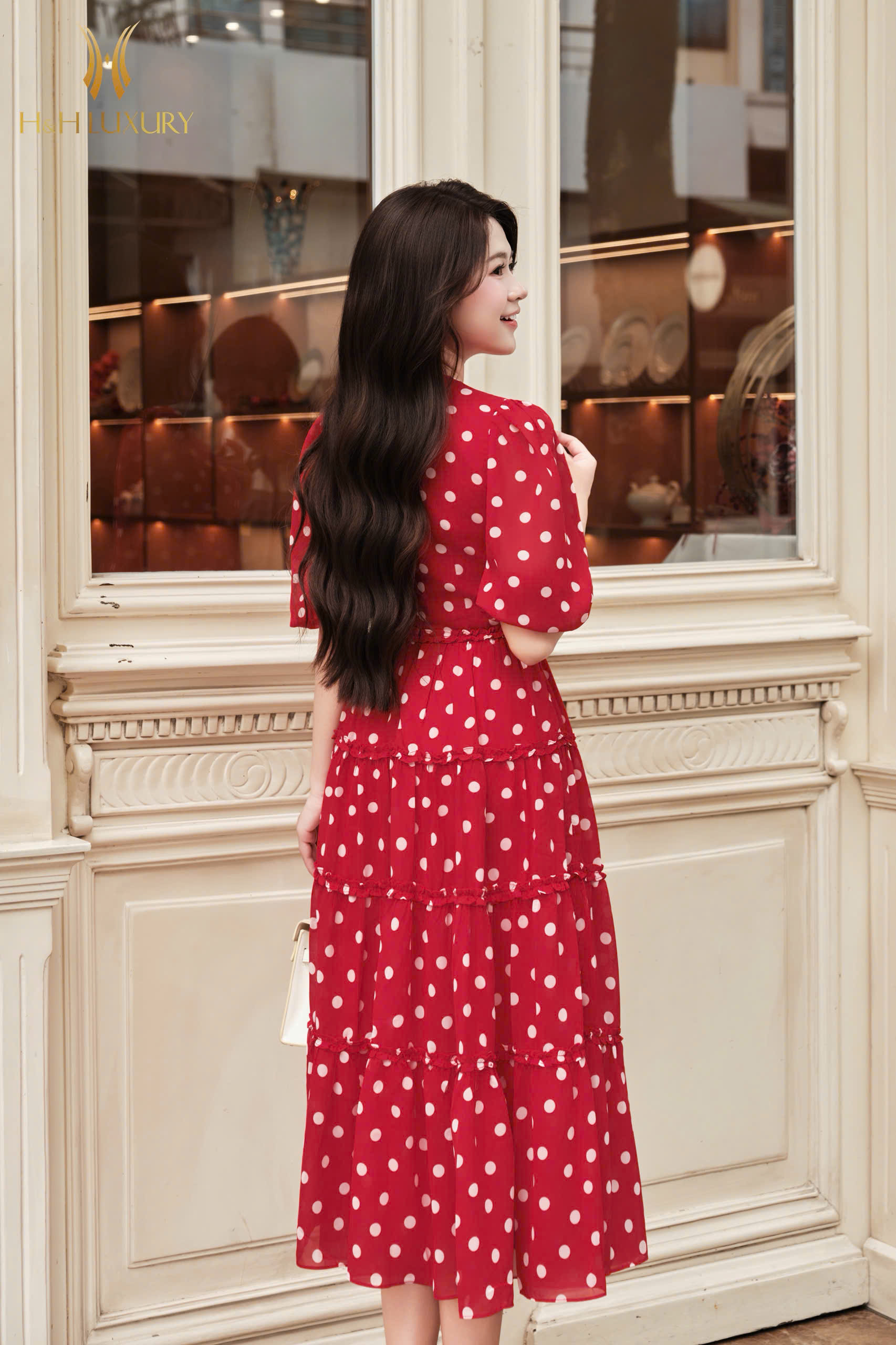 ĐẦM XÒE BI ĐỎ CỔ TRÒN