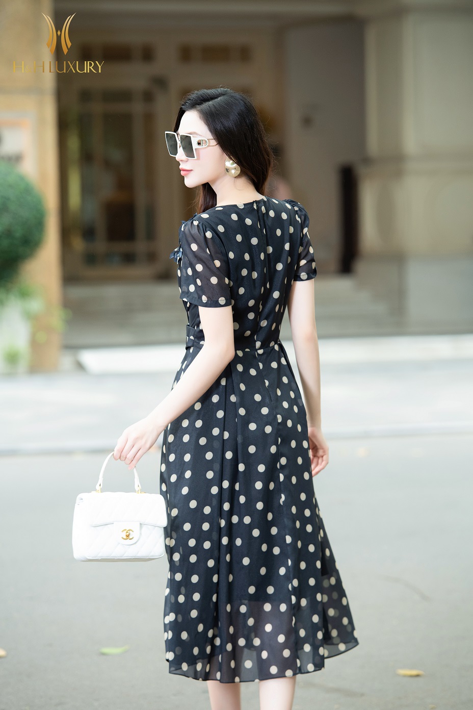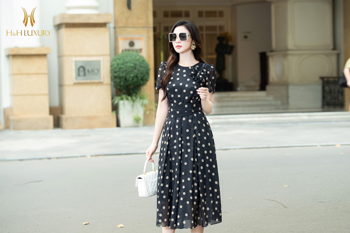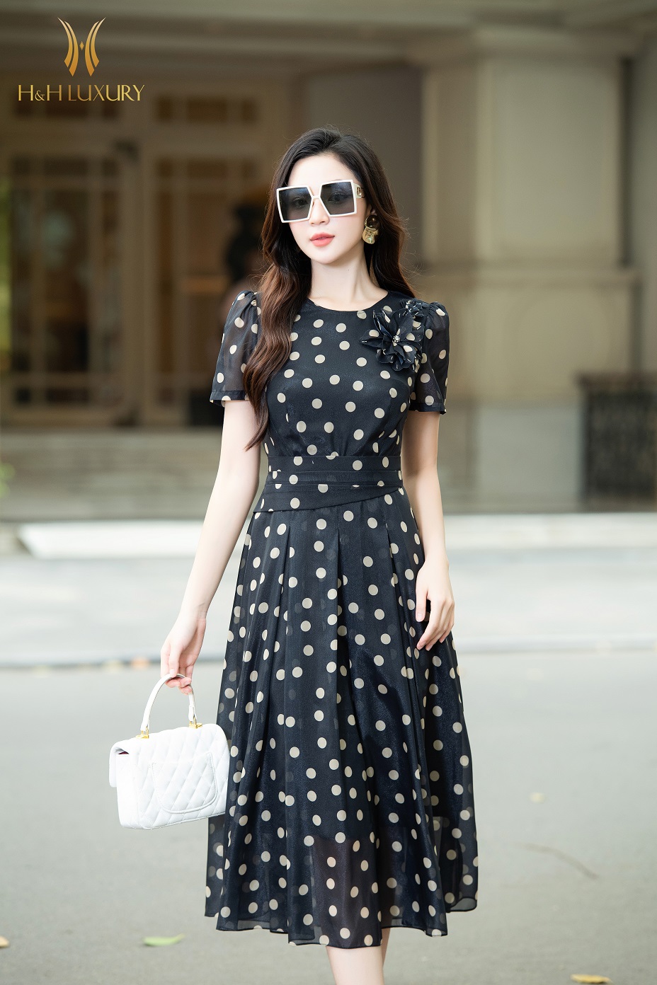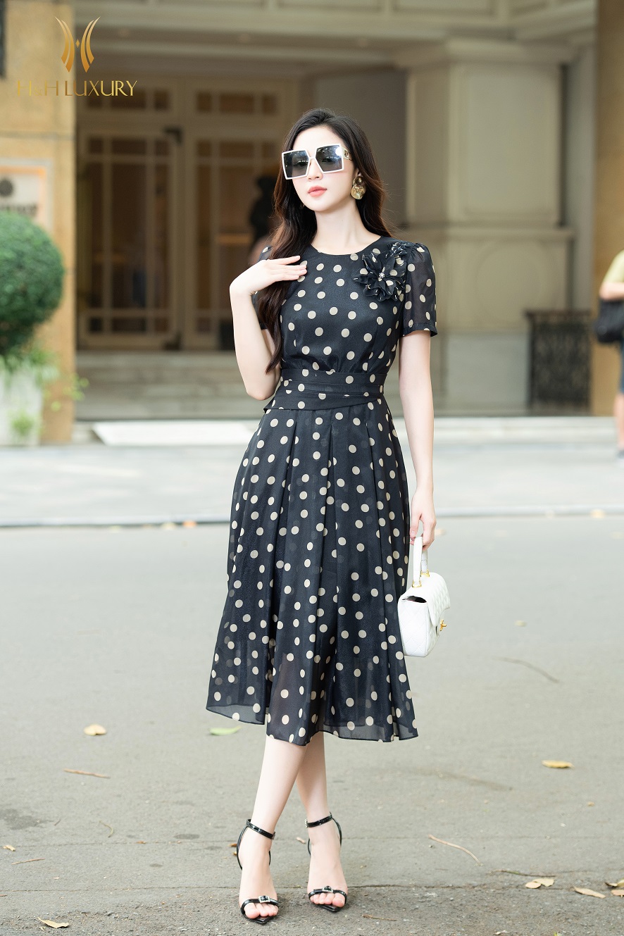ĐẦM XÒE CHẤM BI ĐÍNH HOA NGỰC