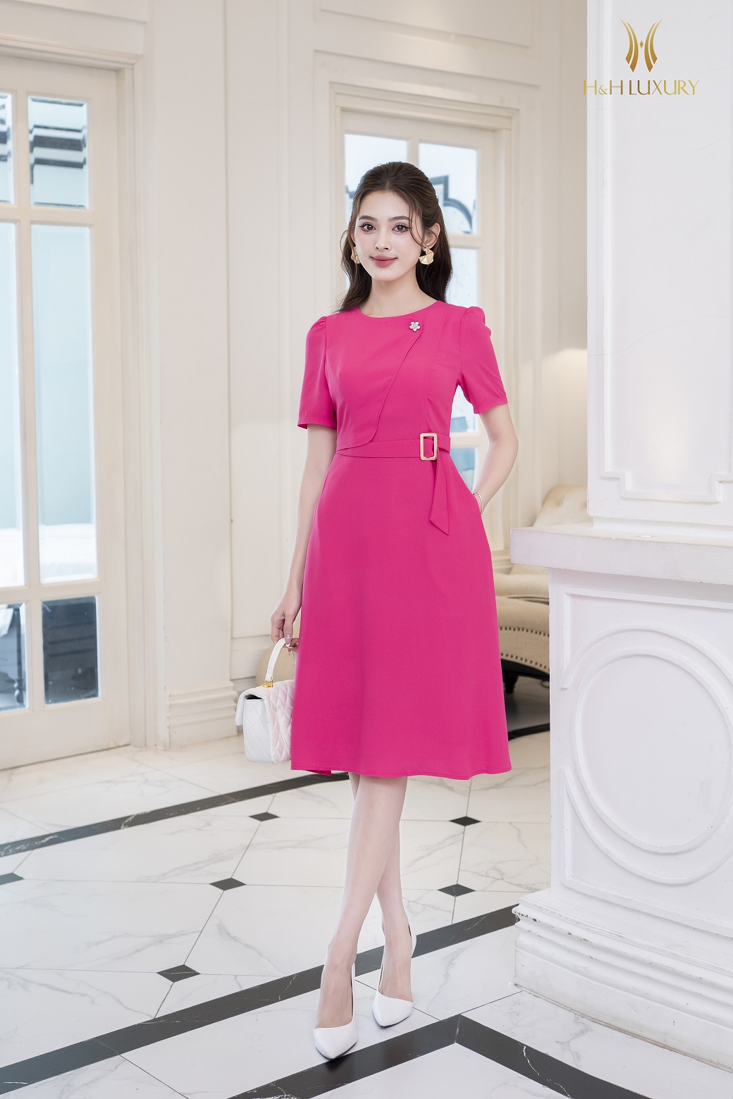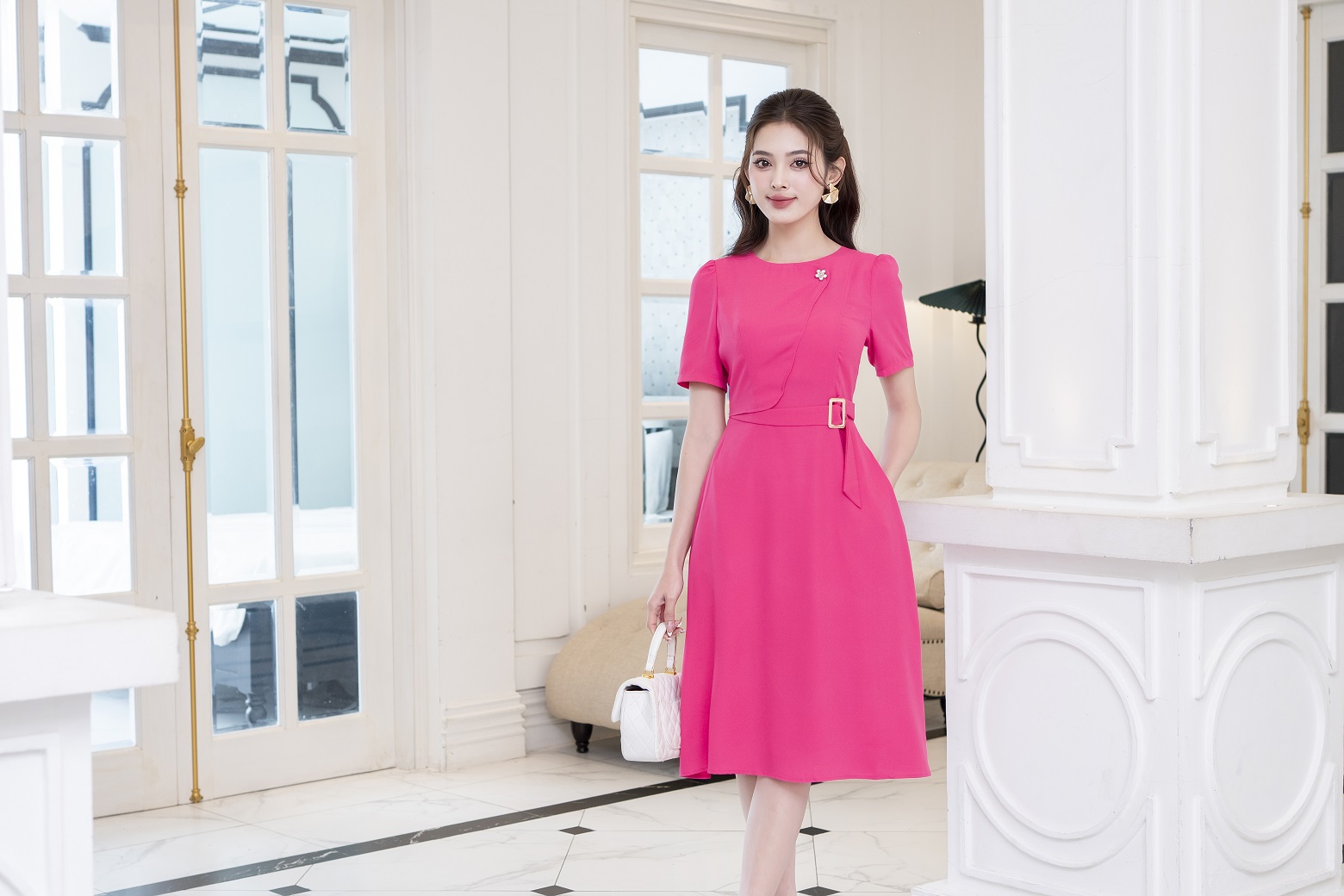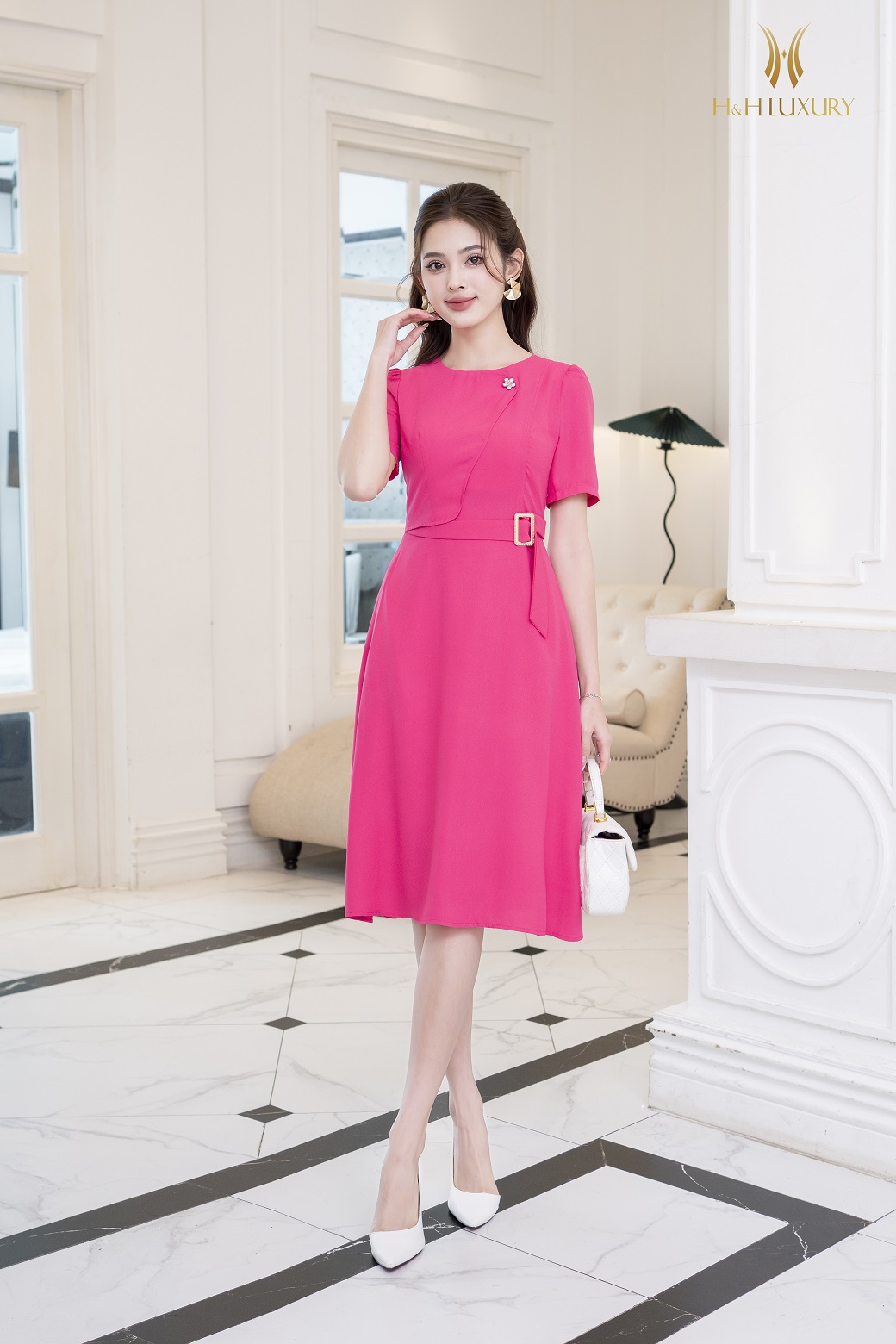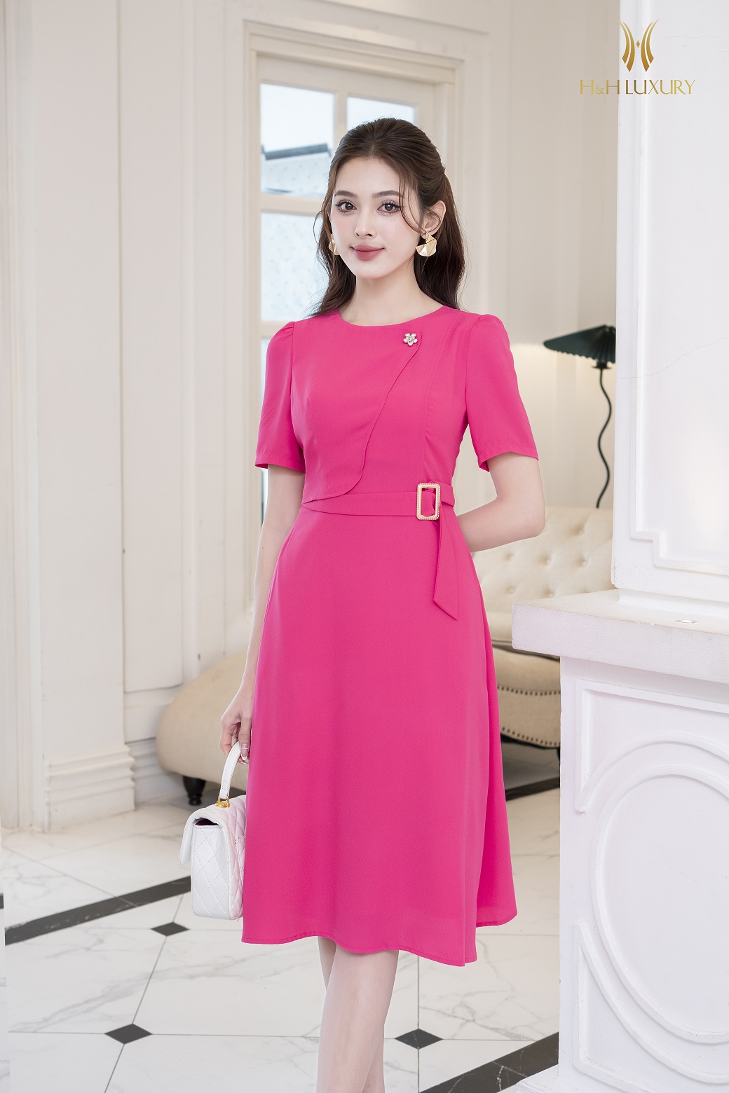 ĐẦM XÒE HỒNG SEN ĐAI EO