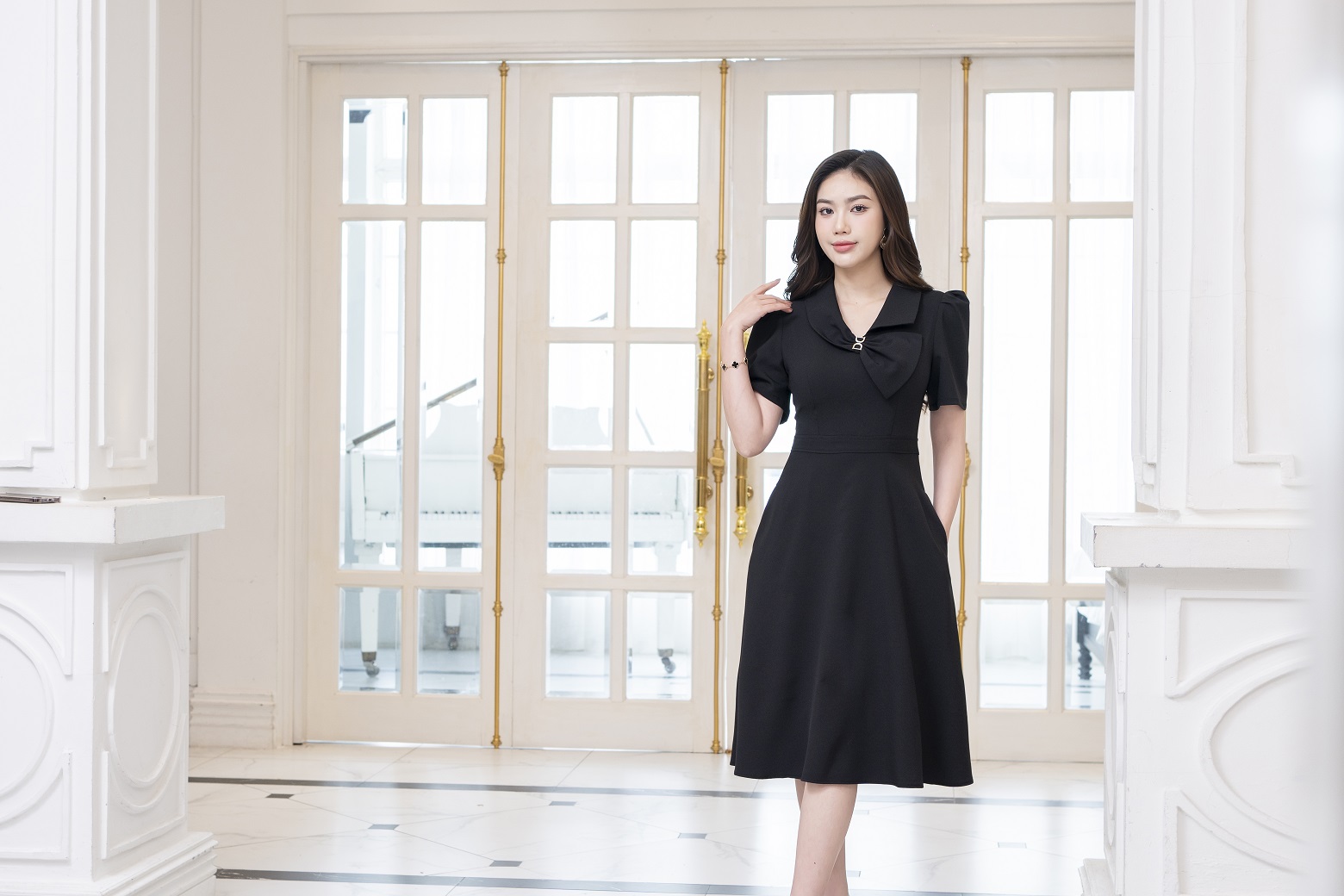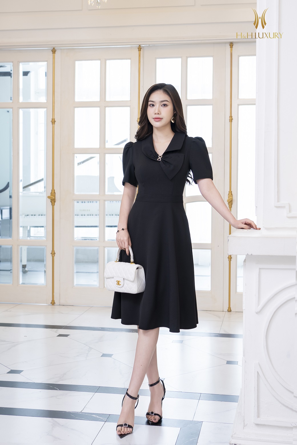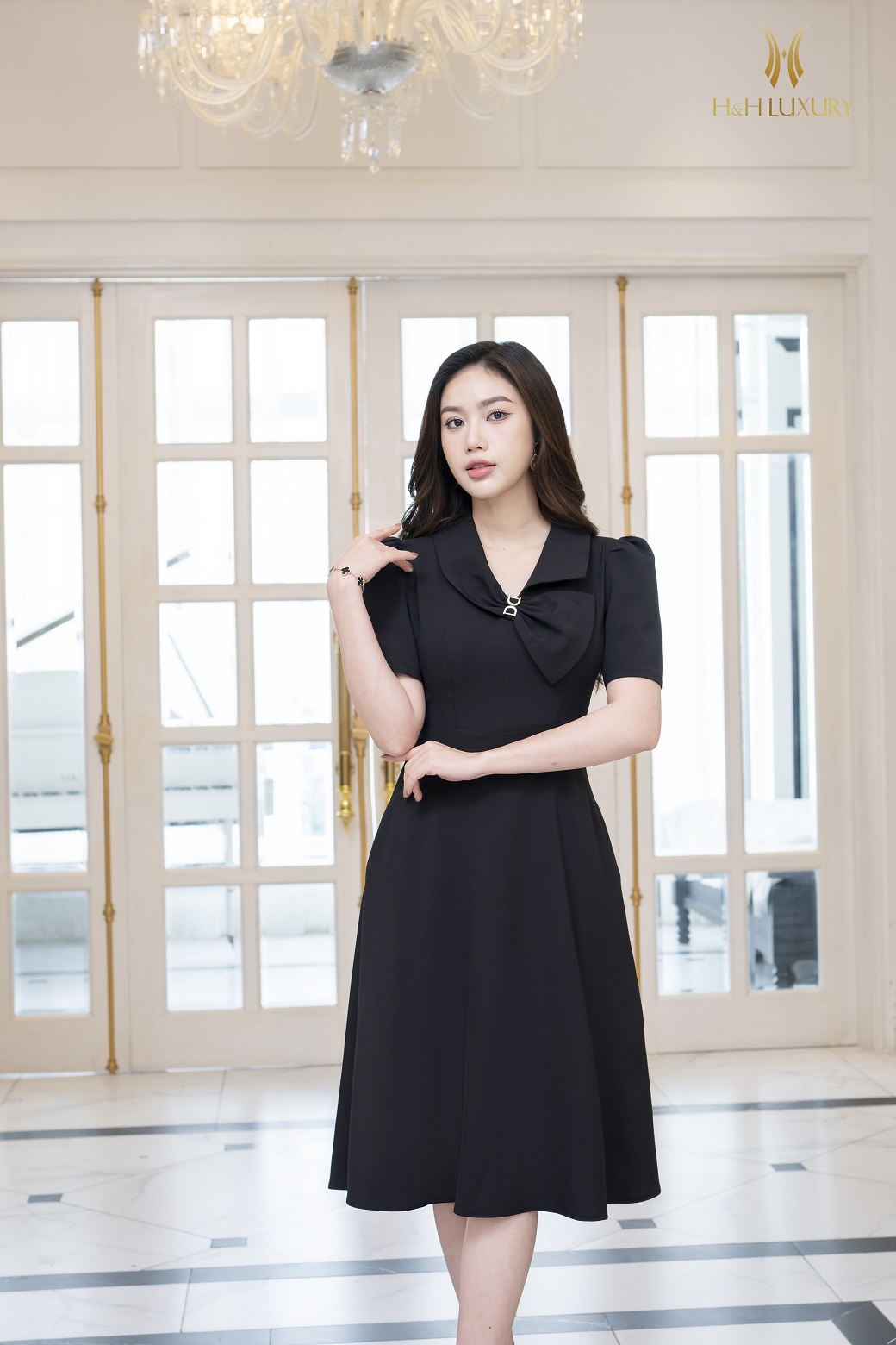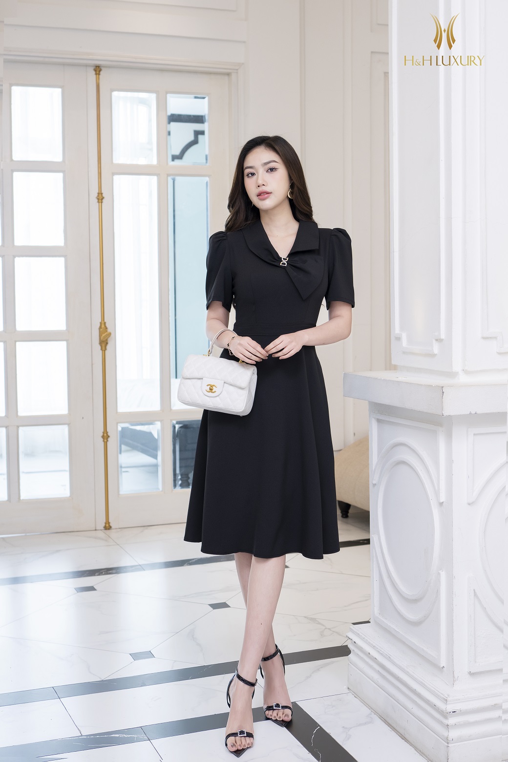 ĐẦM XÒE ĐEN CỔ NƠ CÁCH ĐIỆU