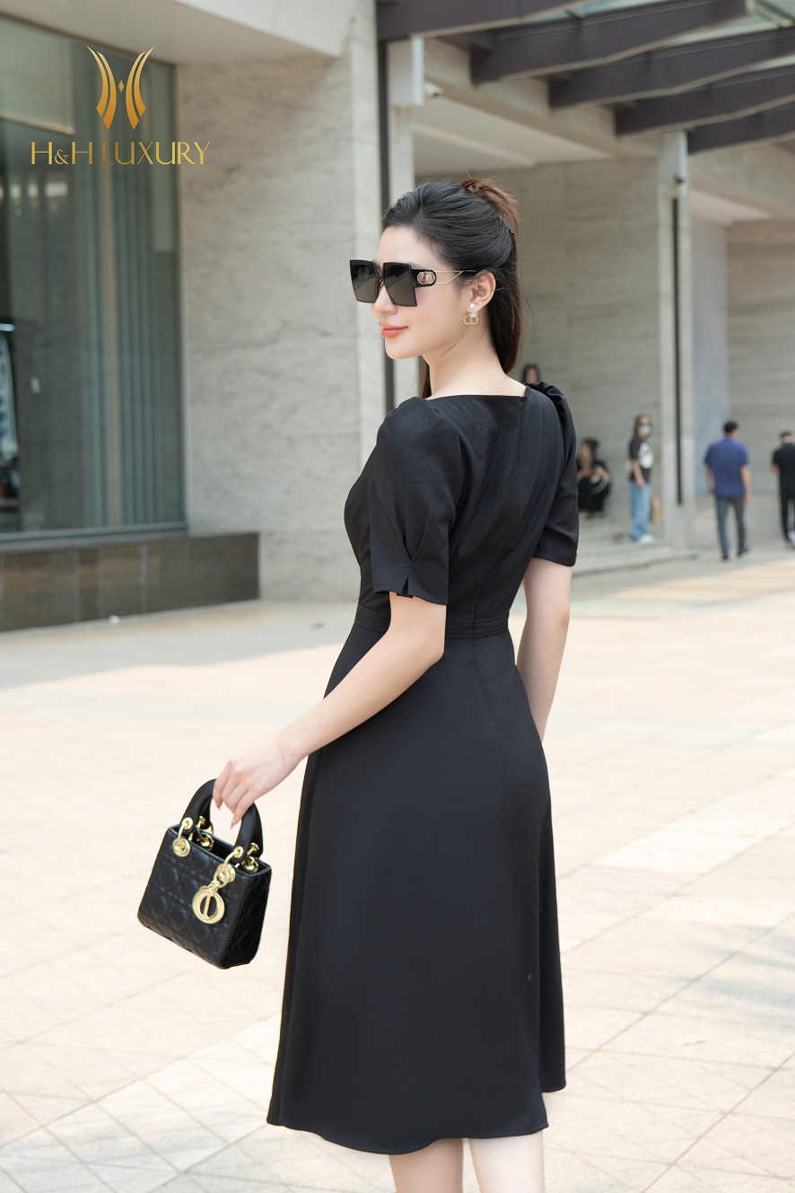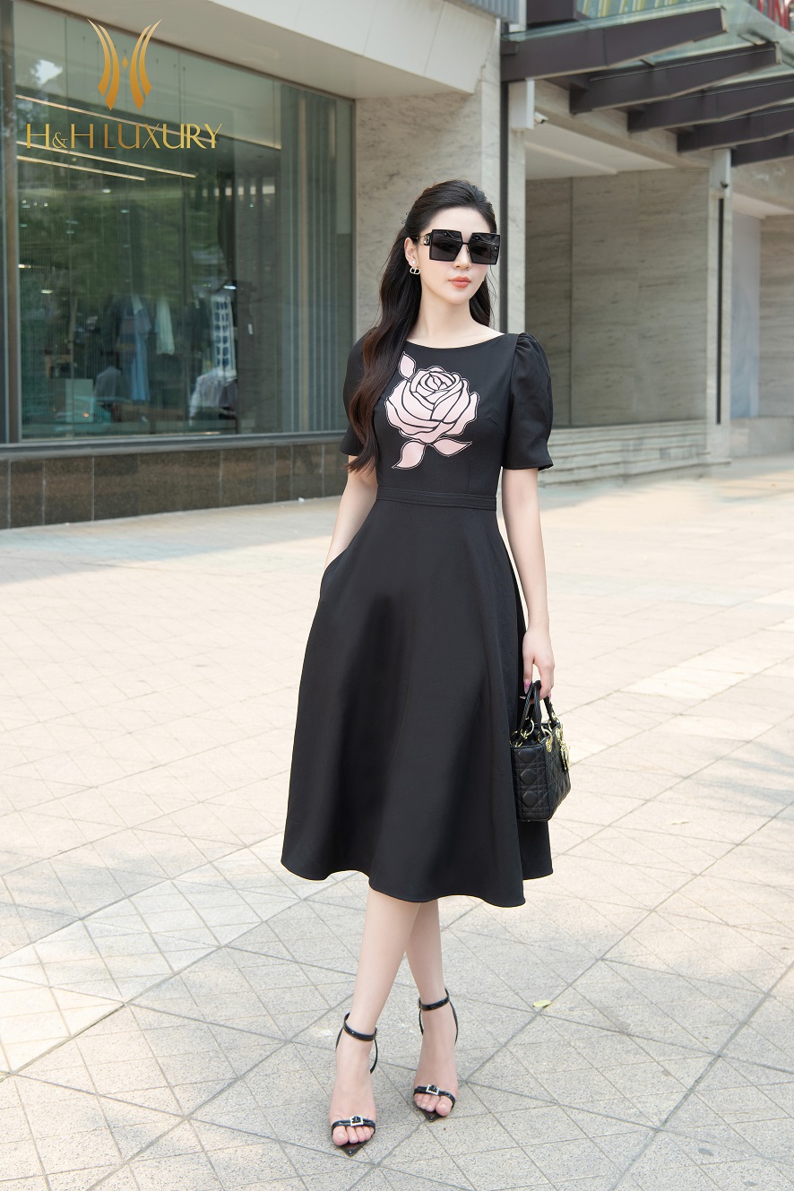 ĐẦM XÒE ĐEN DẬP HOA 3D