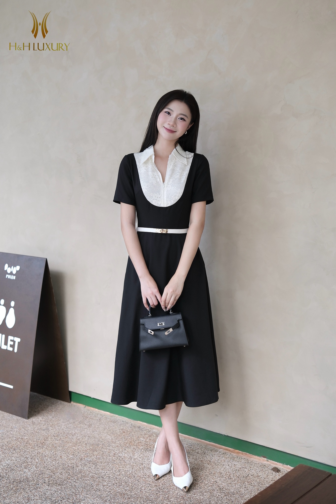 ĐẦM XÒE ĐEN PHỐI REN KEM