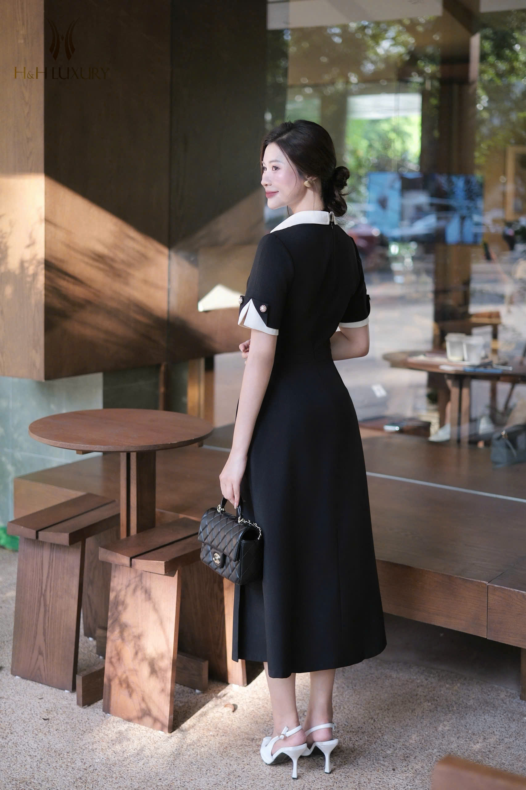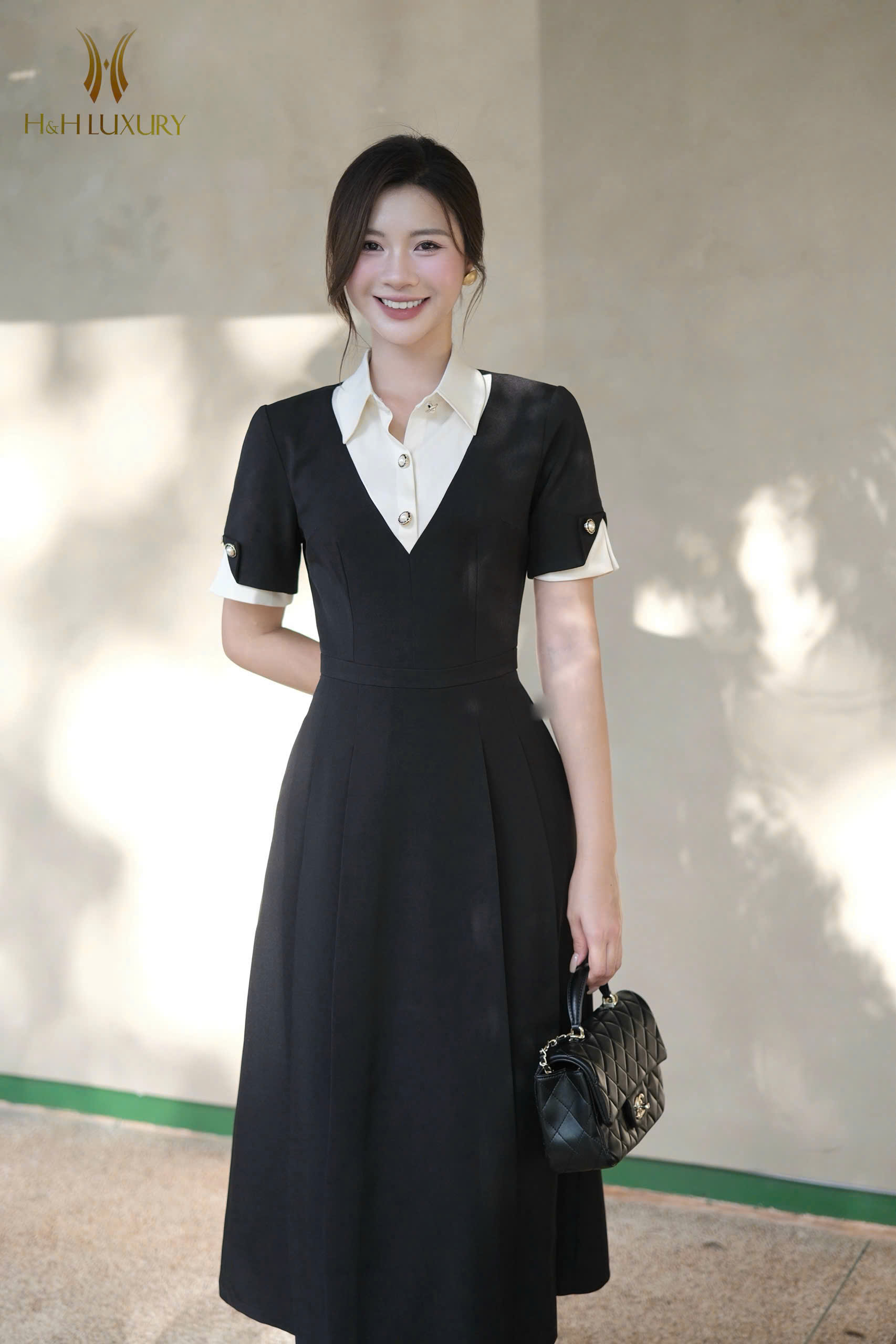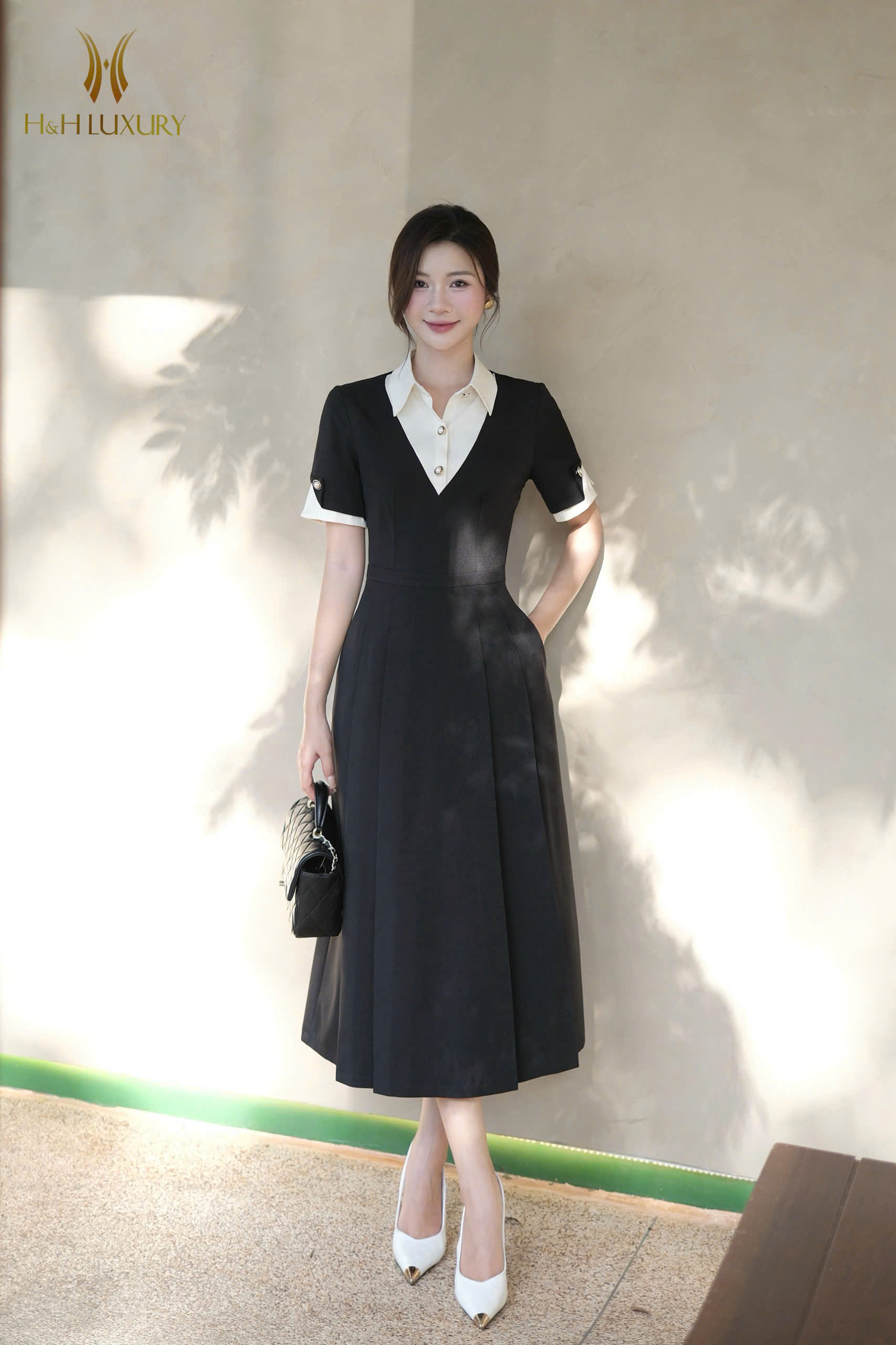 ĐẦM XÒE ĐEN PHỐI TRẮNG CỔ ĐỨC