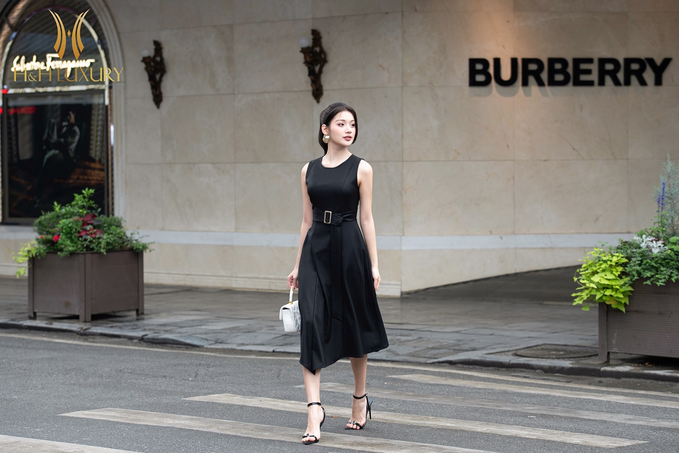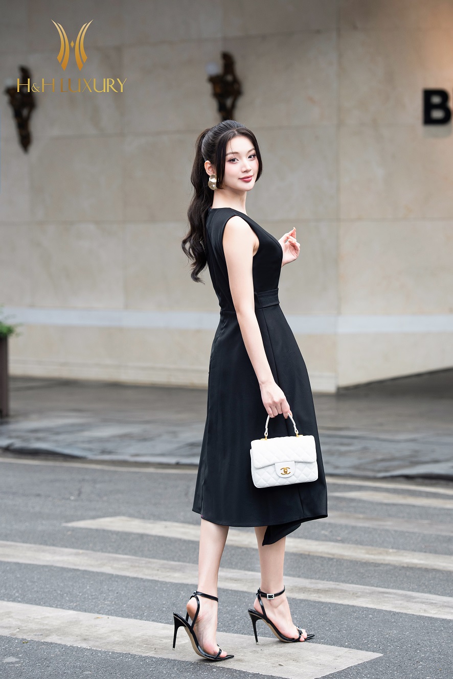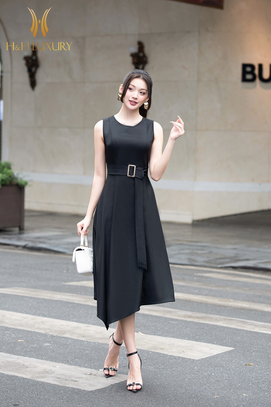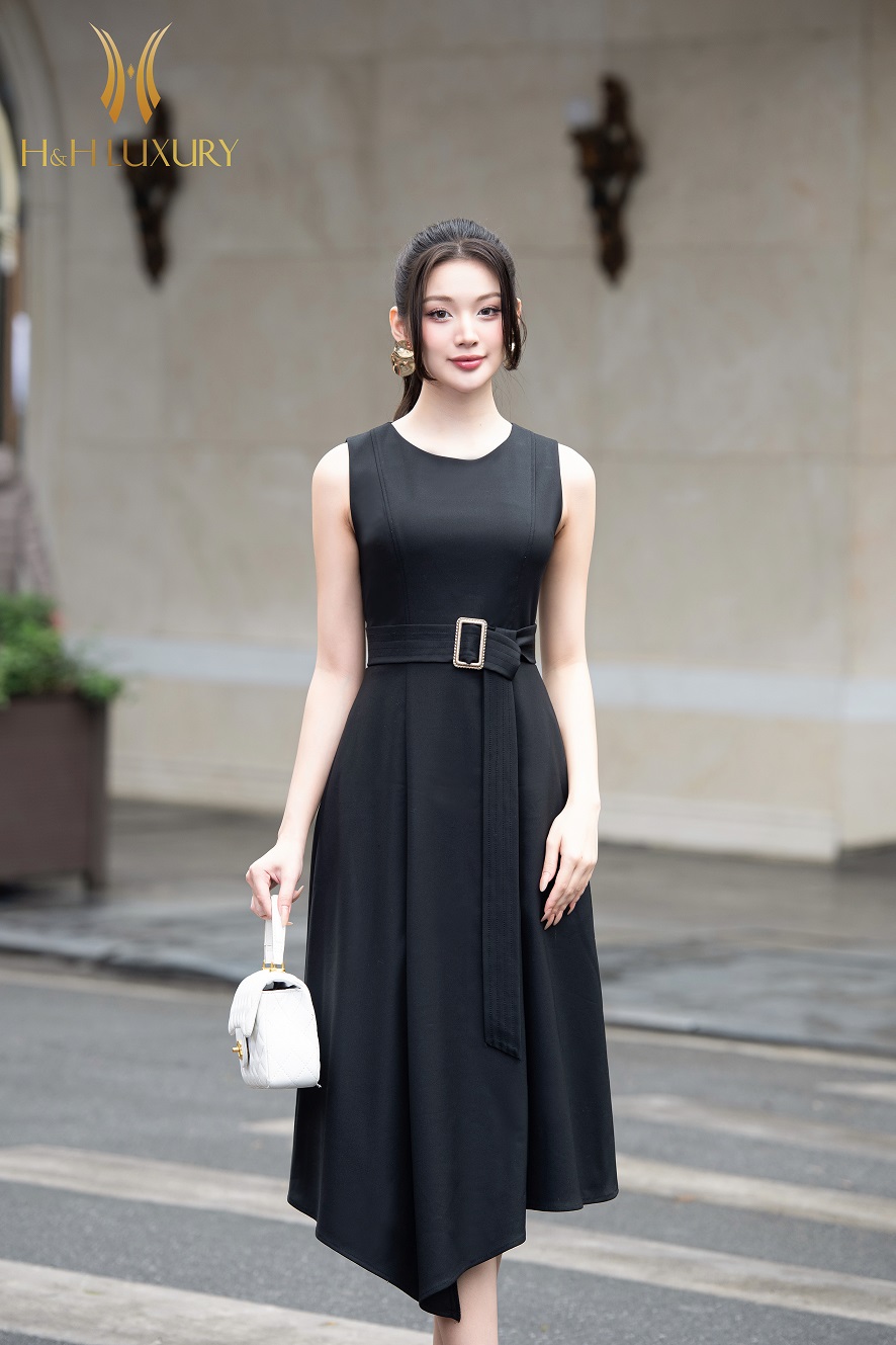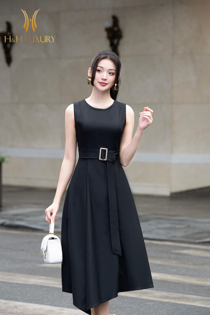 ĐẦM XÒE ĐEN SÁT NÁCH ĐAI EO