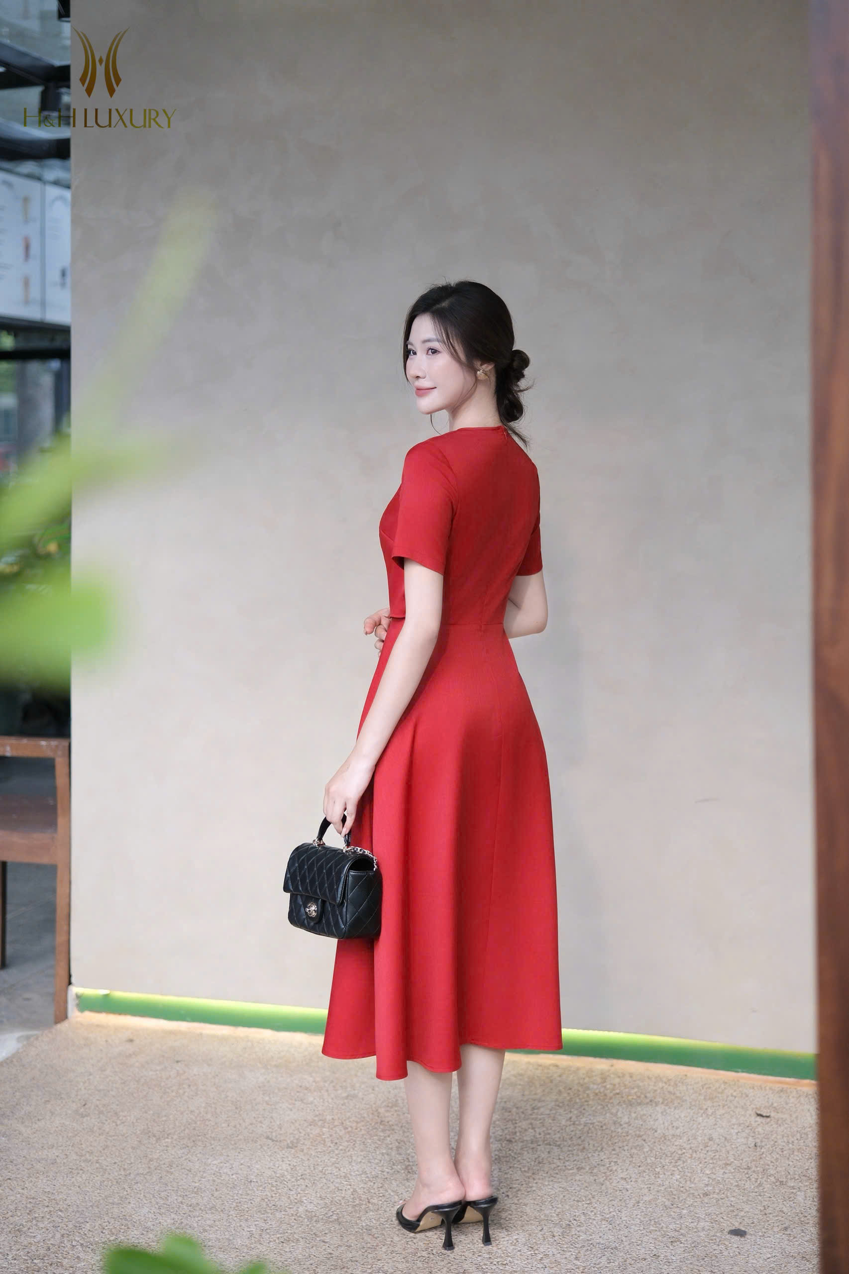 ĐẦM XÒE ĐỎ TÀ NGỰC ĐÍNH HOA TRÀ