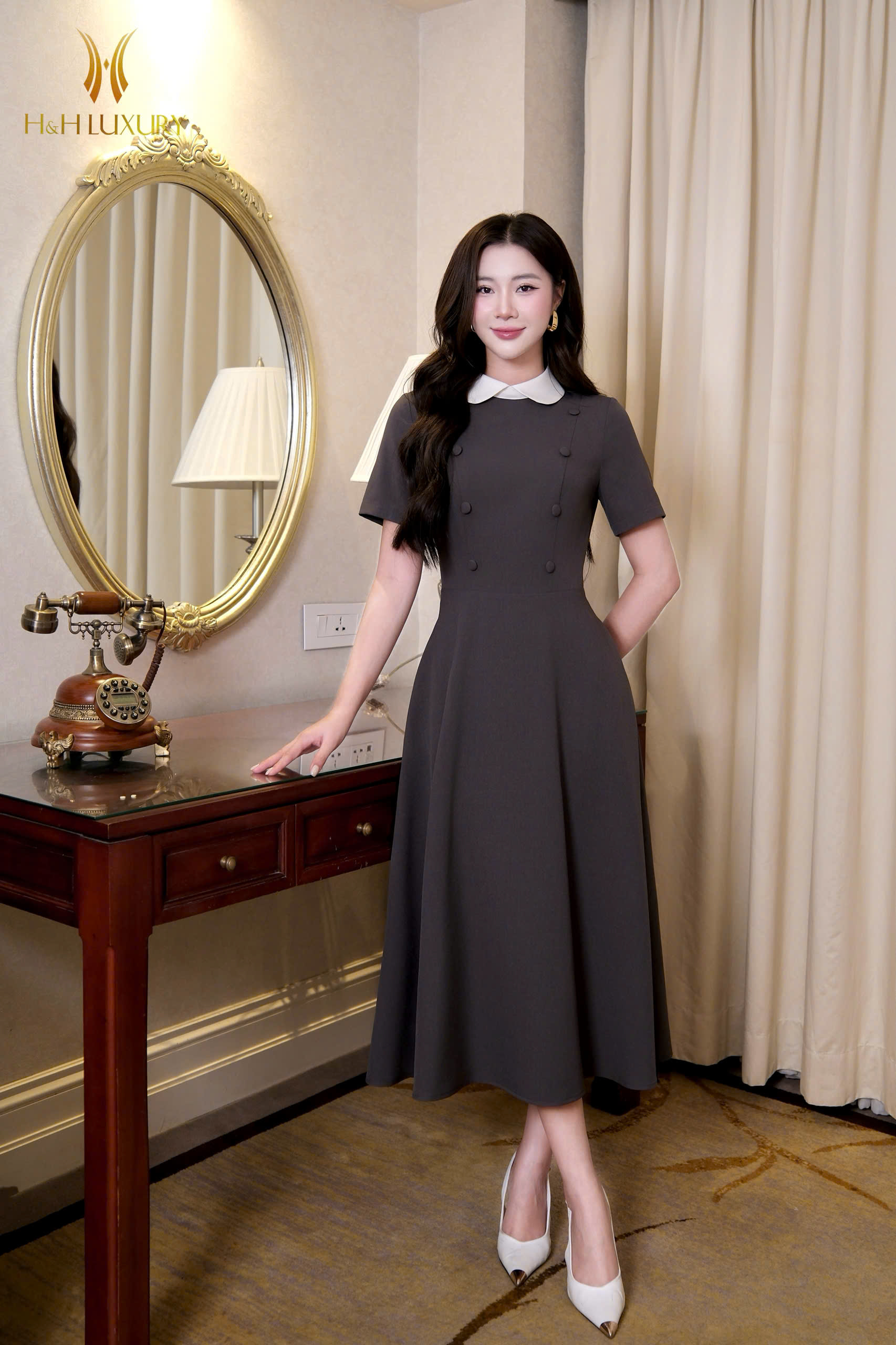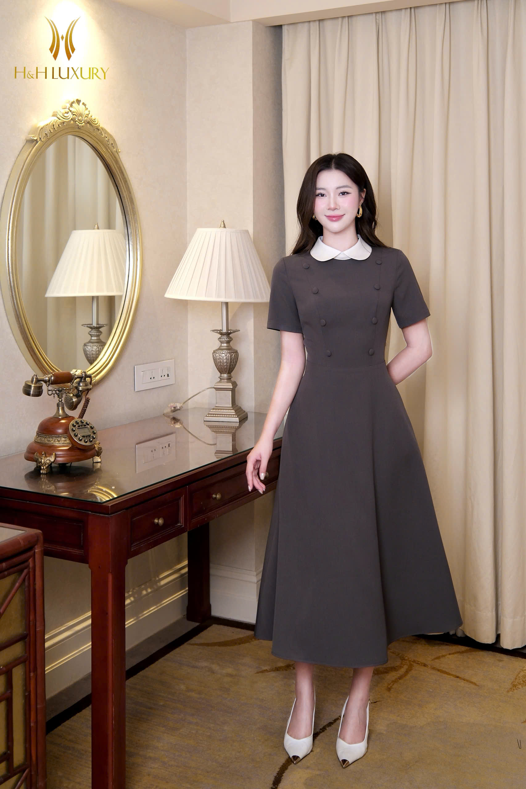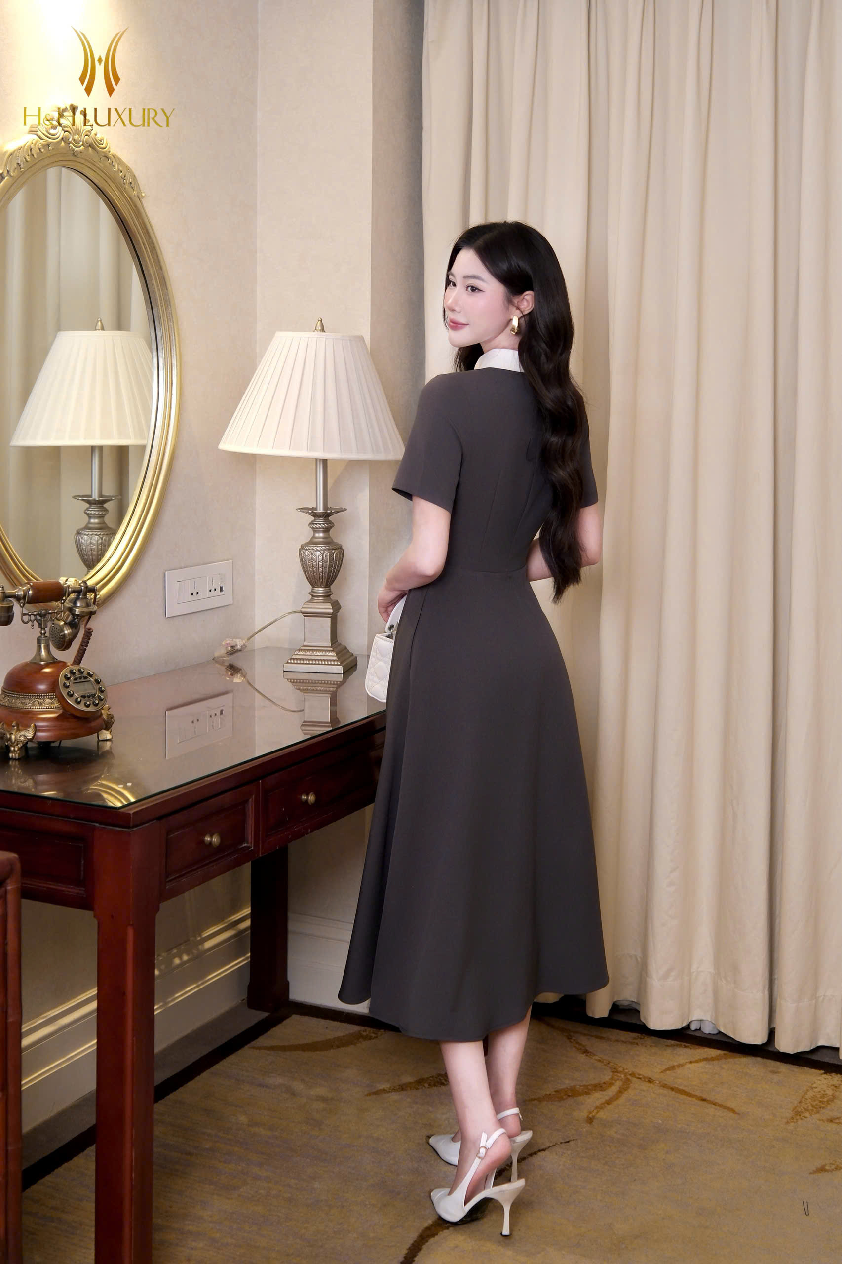 ĐẦM XÒE GHI TÂY PHỐI CỔ ĐÍNH CÚC