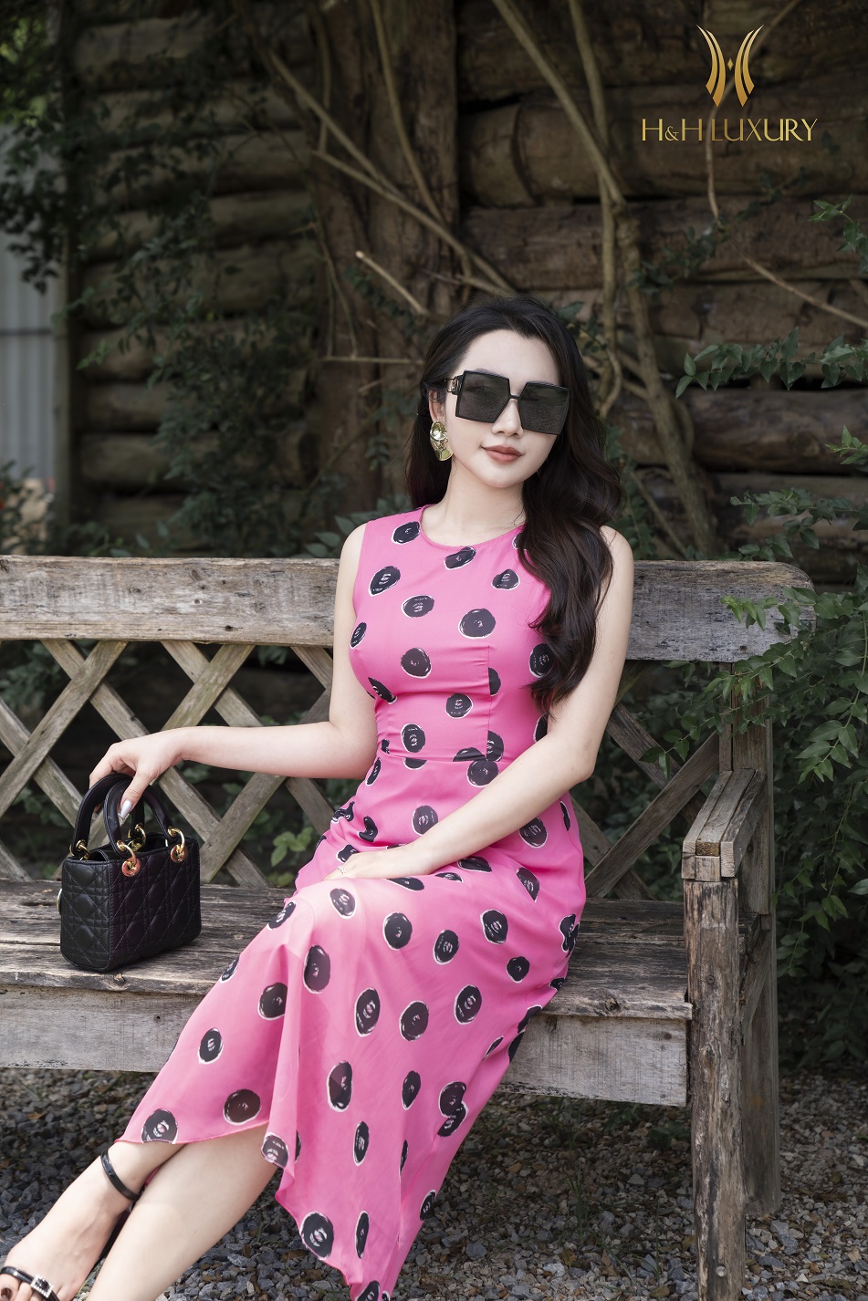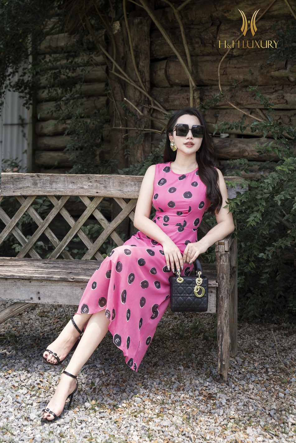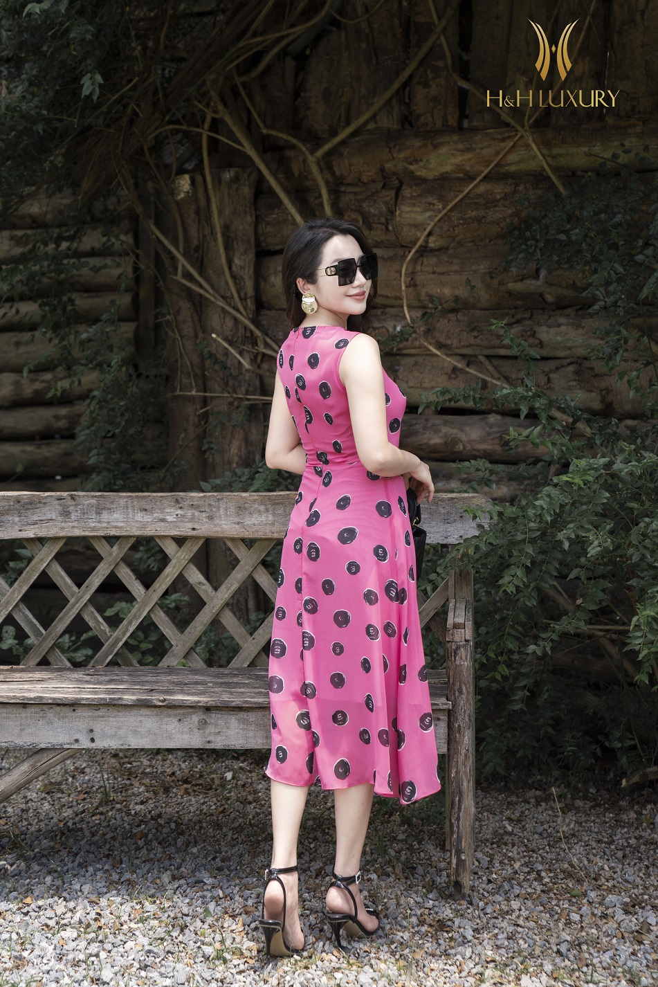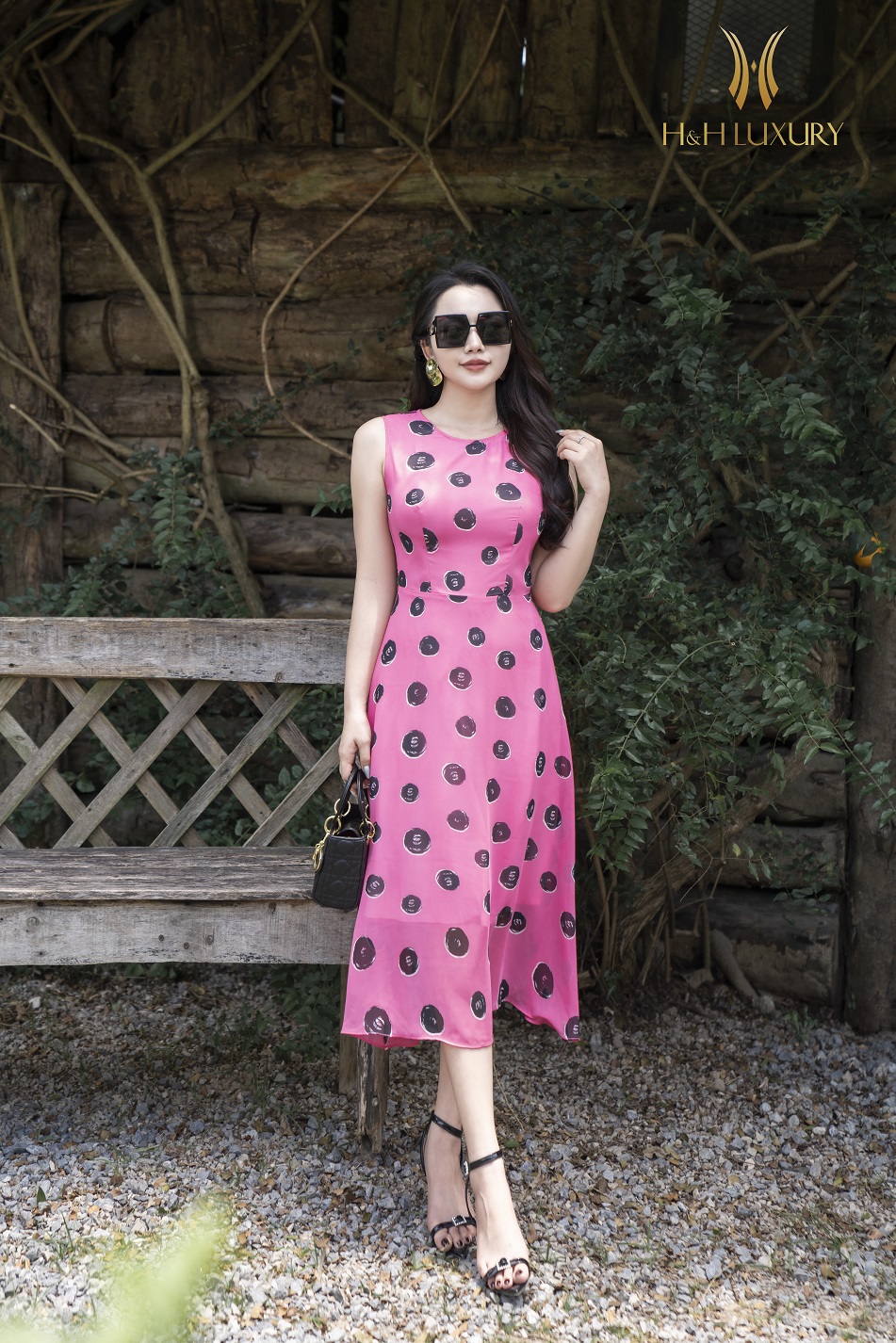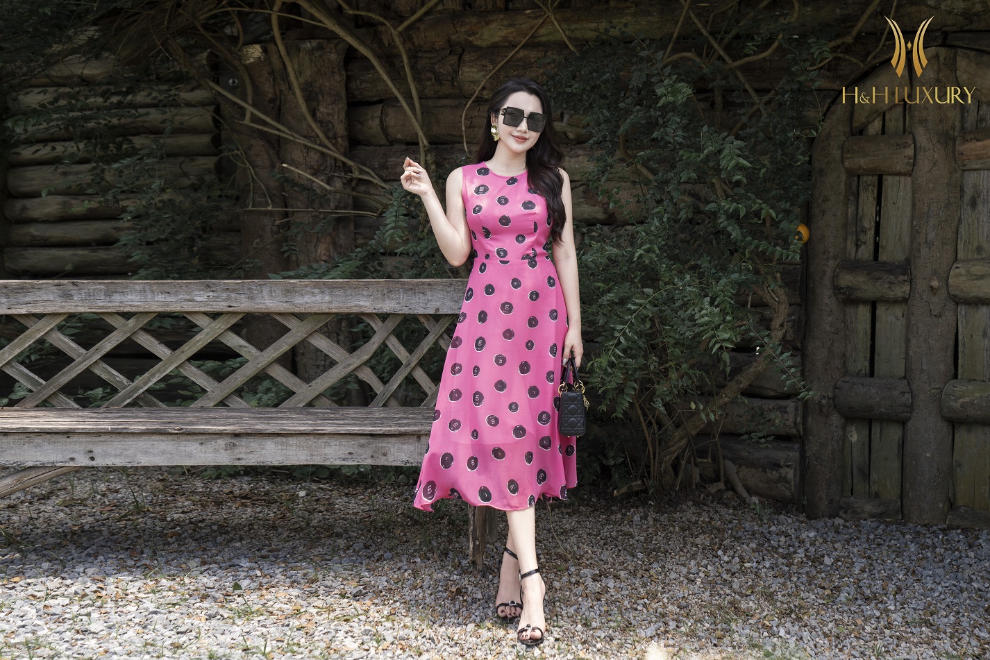 ĐẦM XÒE HỒNG CHẤM BI CỔ TRÒN