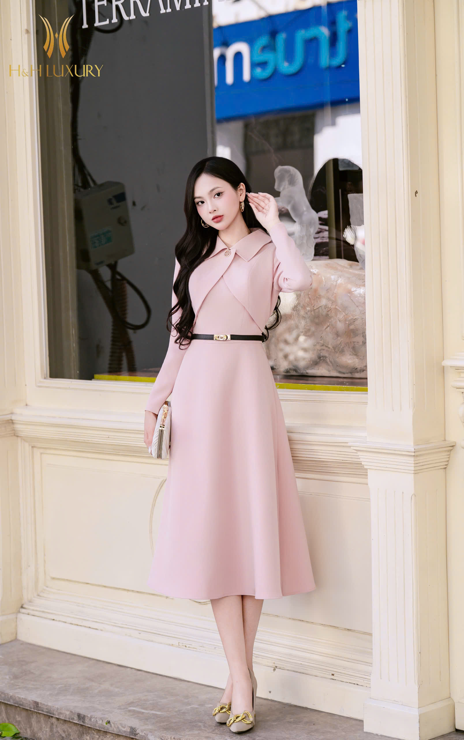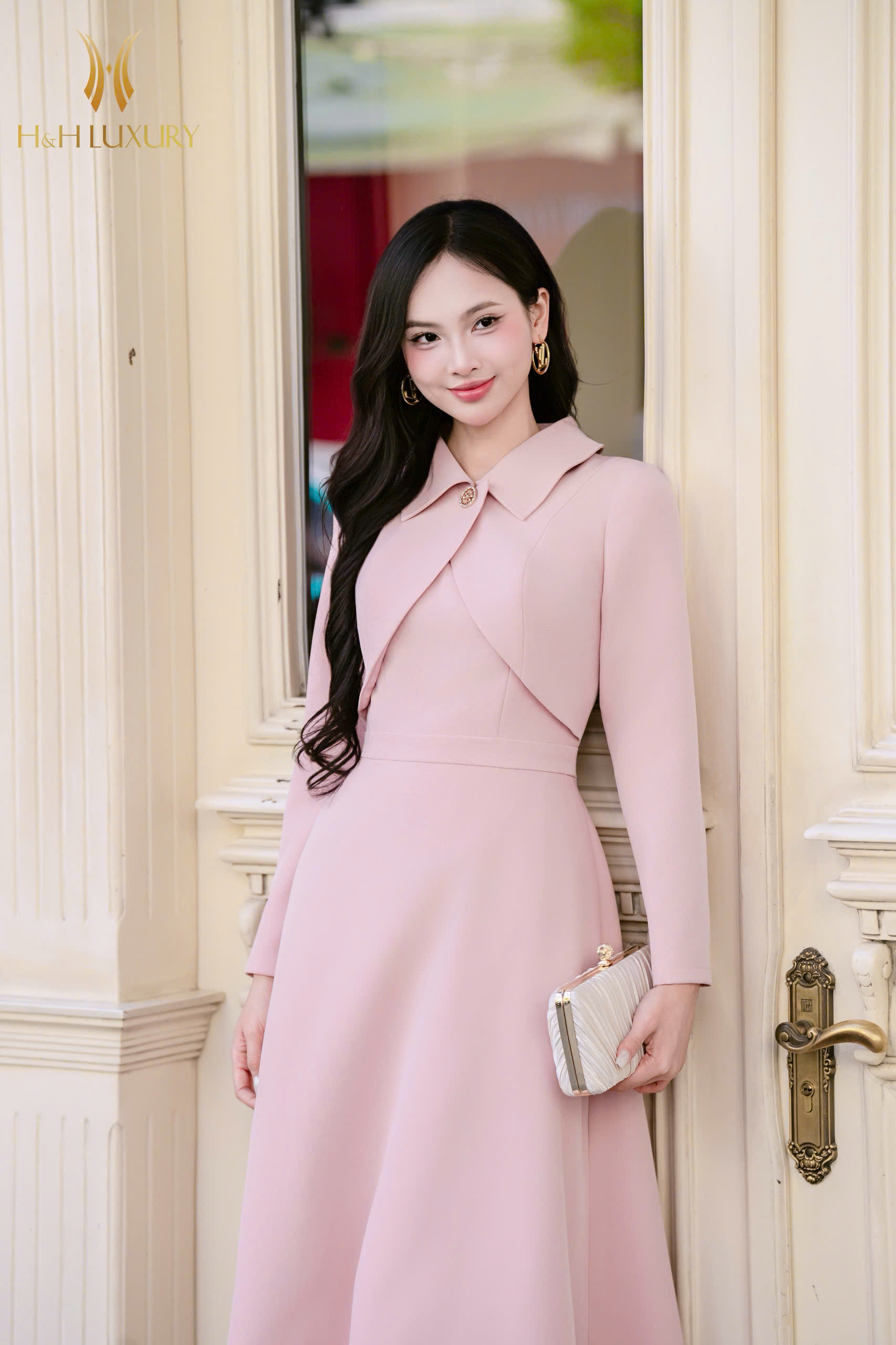 ĐẦM XÒE HỒNG TÀ NGỰC ĐÍNH KHUY ĐÁ