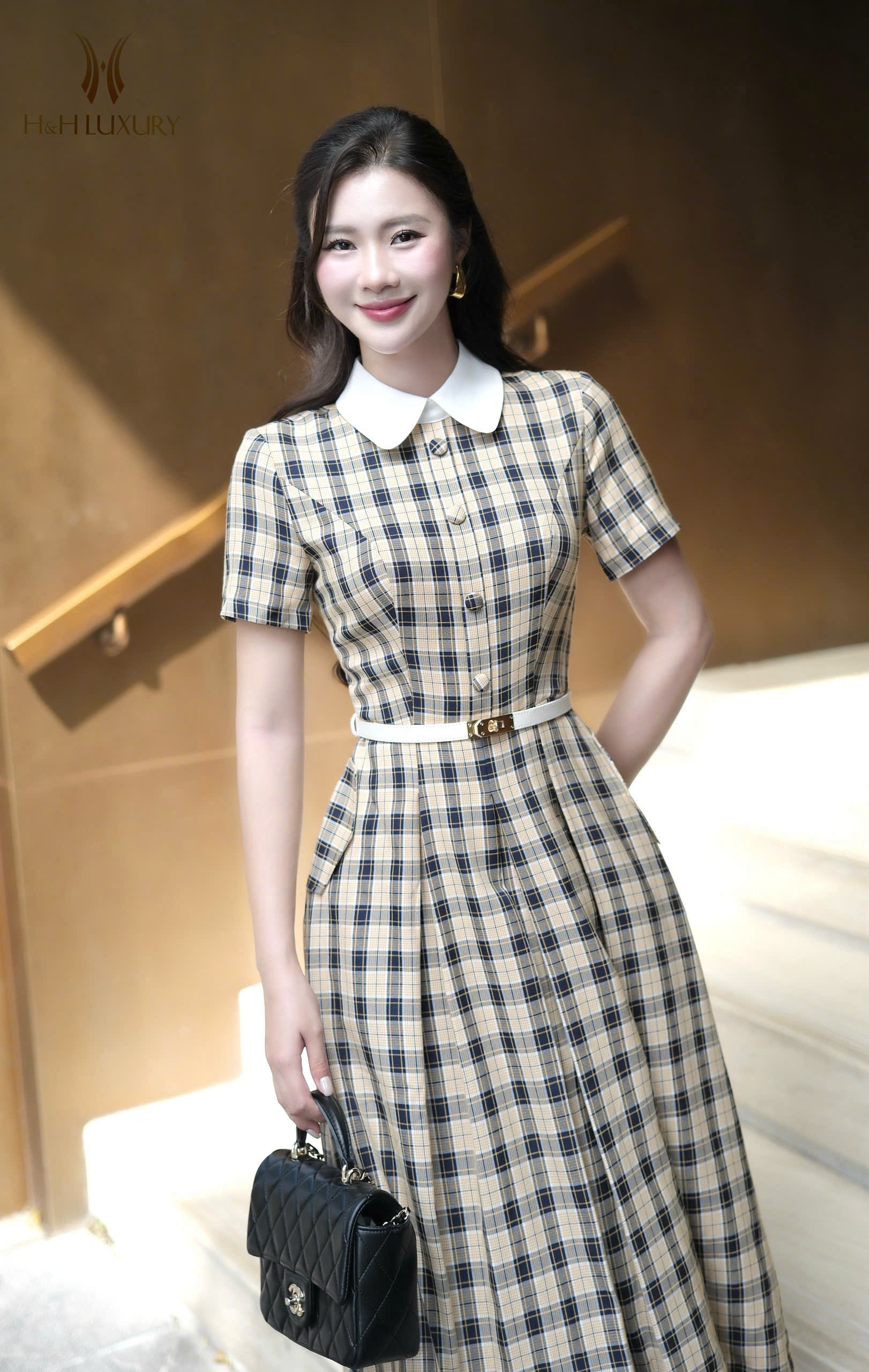 ĐẦM XÒE KẺ XANH KEM PHỐI CỔ