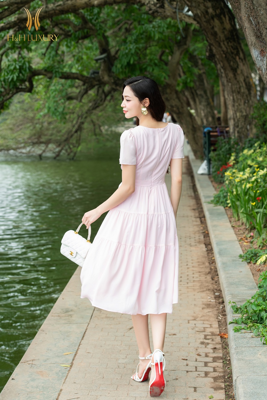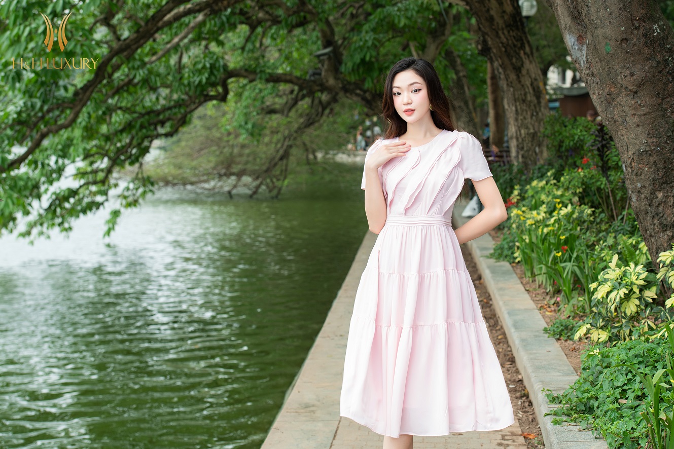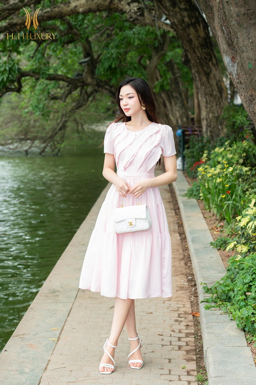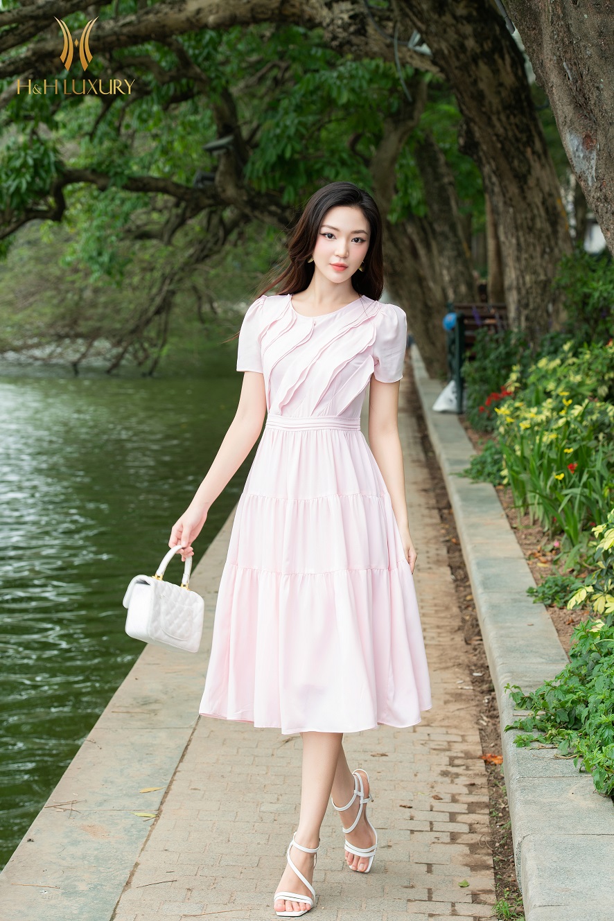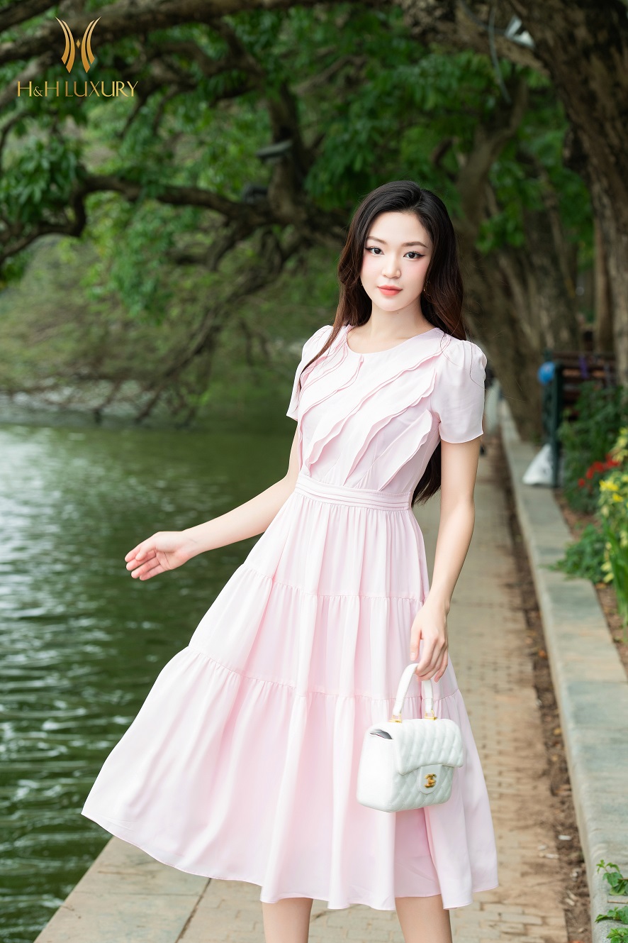 ĐẦM XÒE LỤA HỒNG PASTEL BÈO THÂN