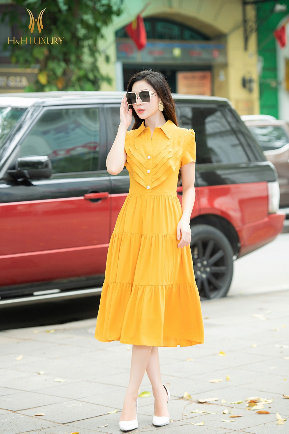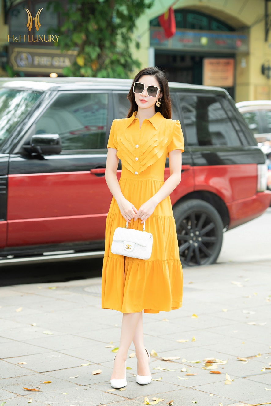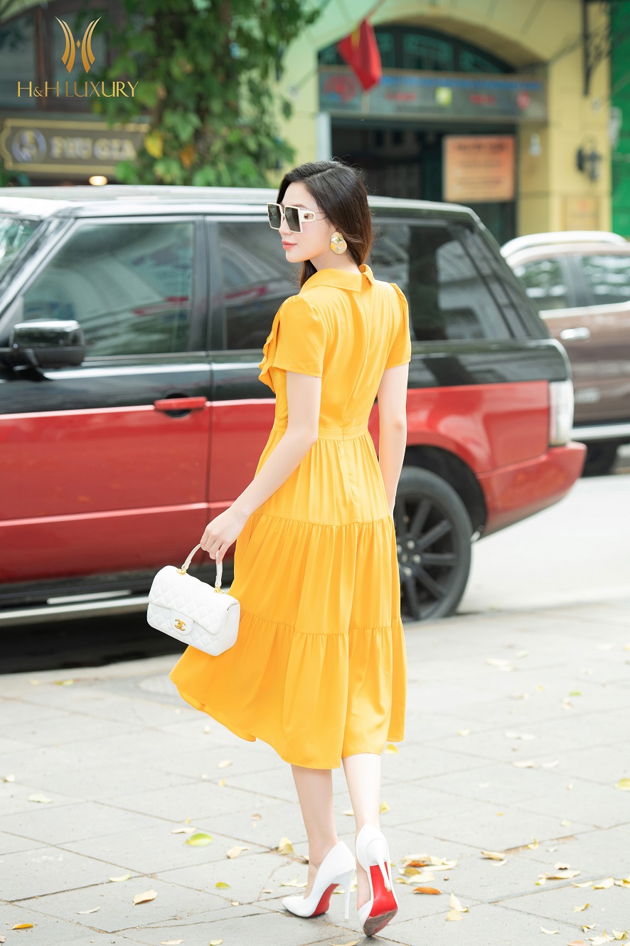 ĐẦM XÒE LỤA VÀNG CỔ ĐỨC BÈO NGỰC