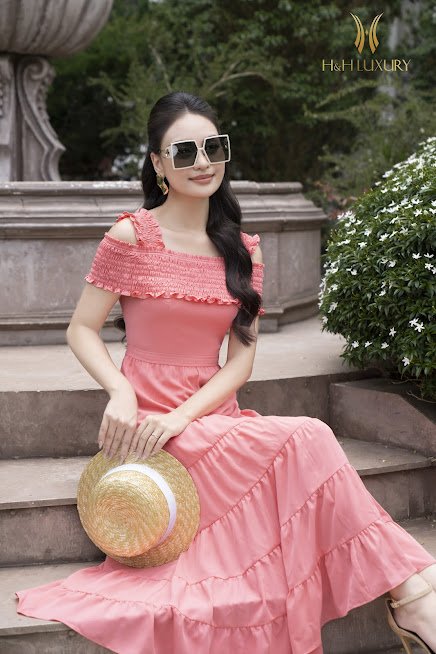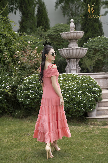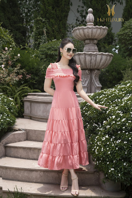 ĐẦM XÒE MAXI HỒNG CHUN NGỰC