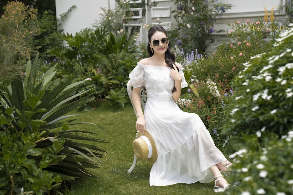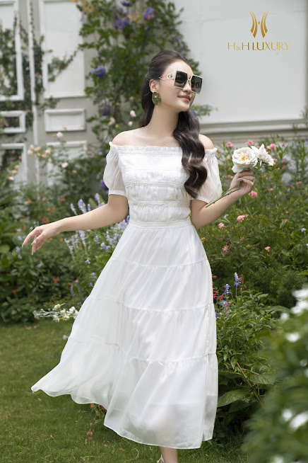 ĐẦM XÒE MAXI TRẮNG TƠ HÀN CAO CẤP PHỐI REN