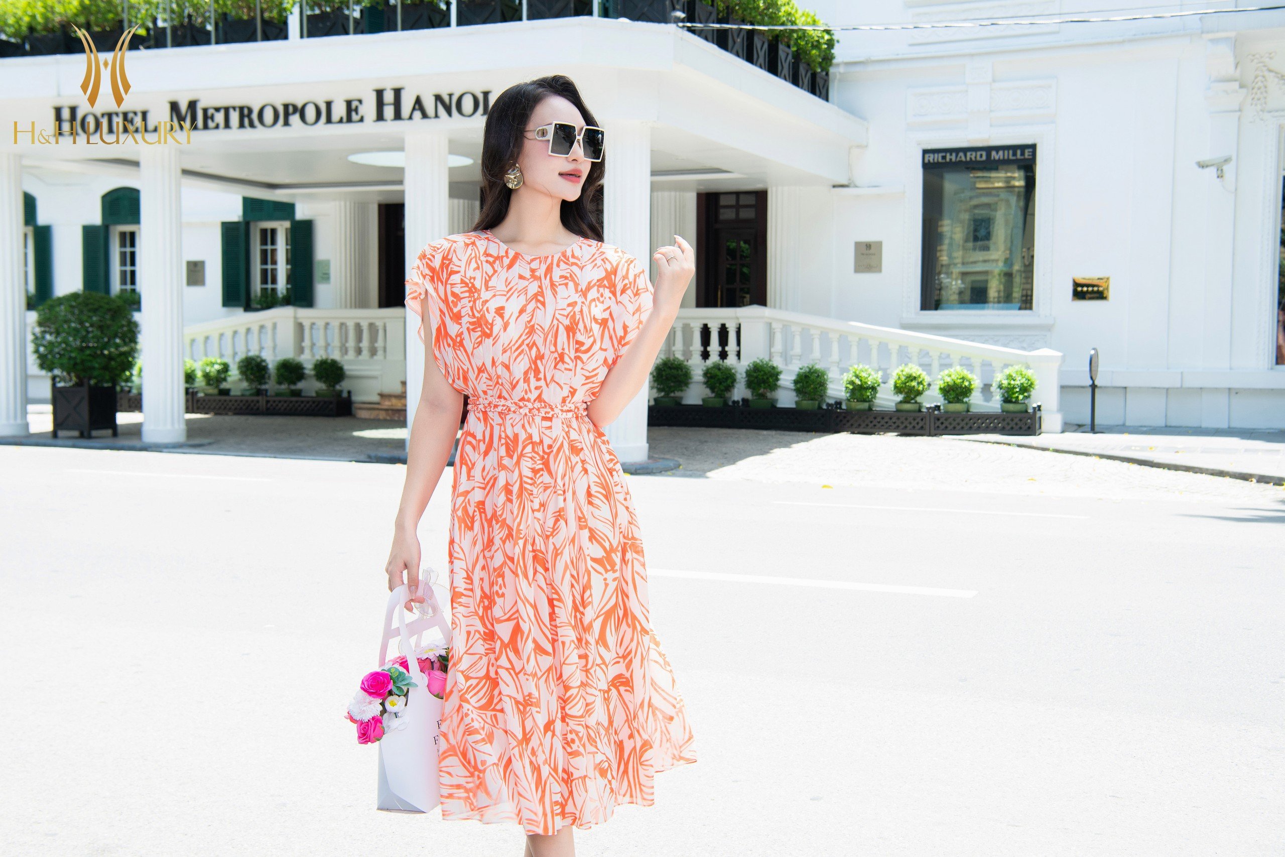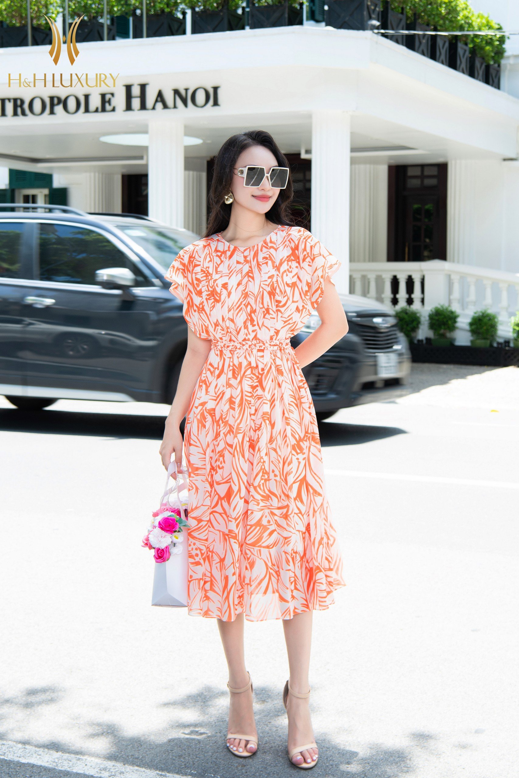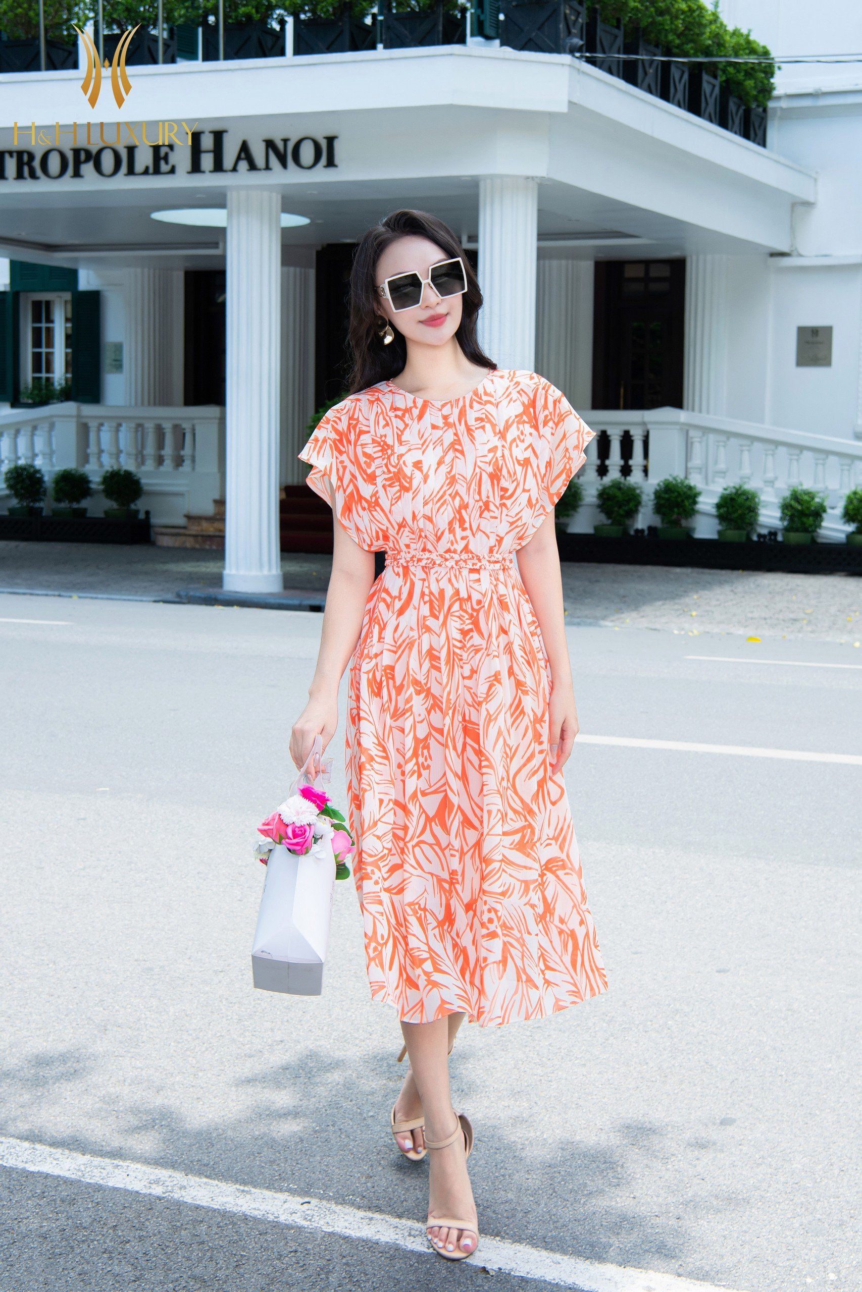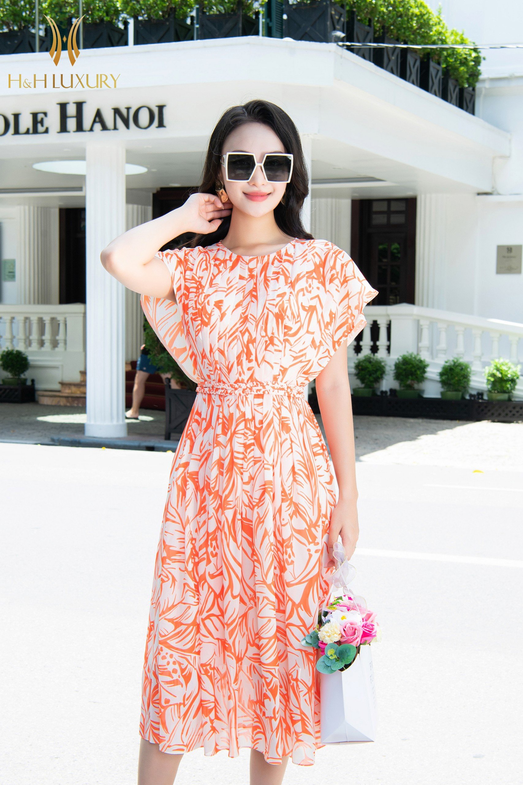 ĐẦM XÒE TAY CHỜM TẾT EO HOẠ TIẾT CAM