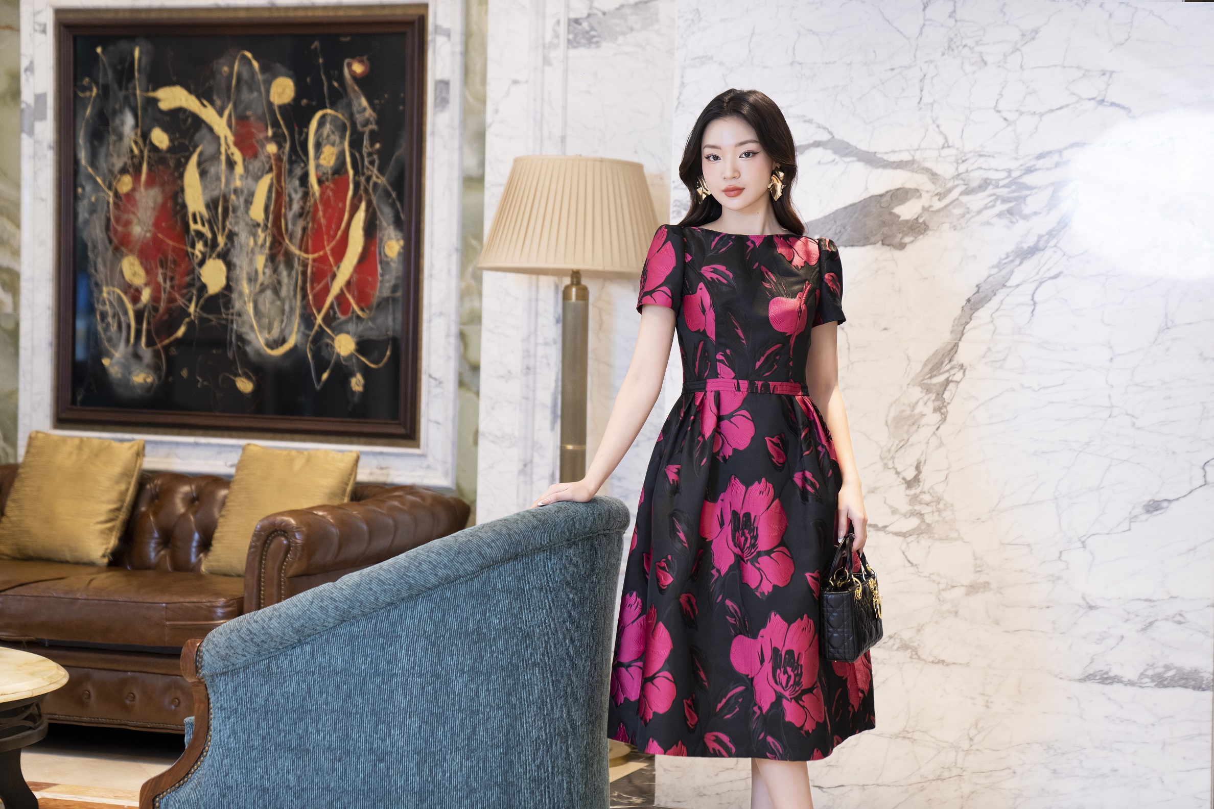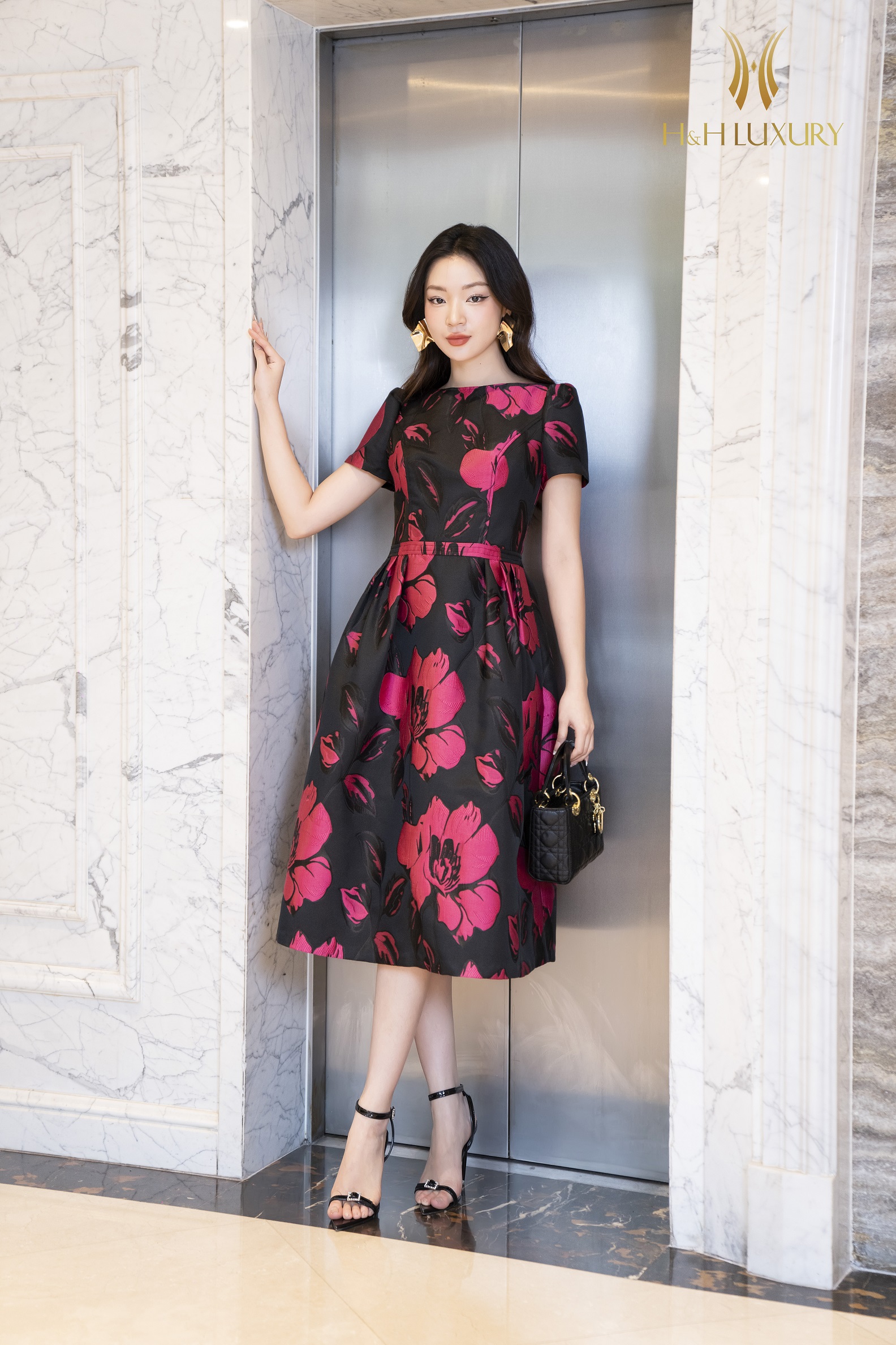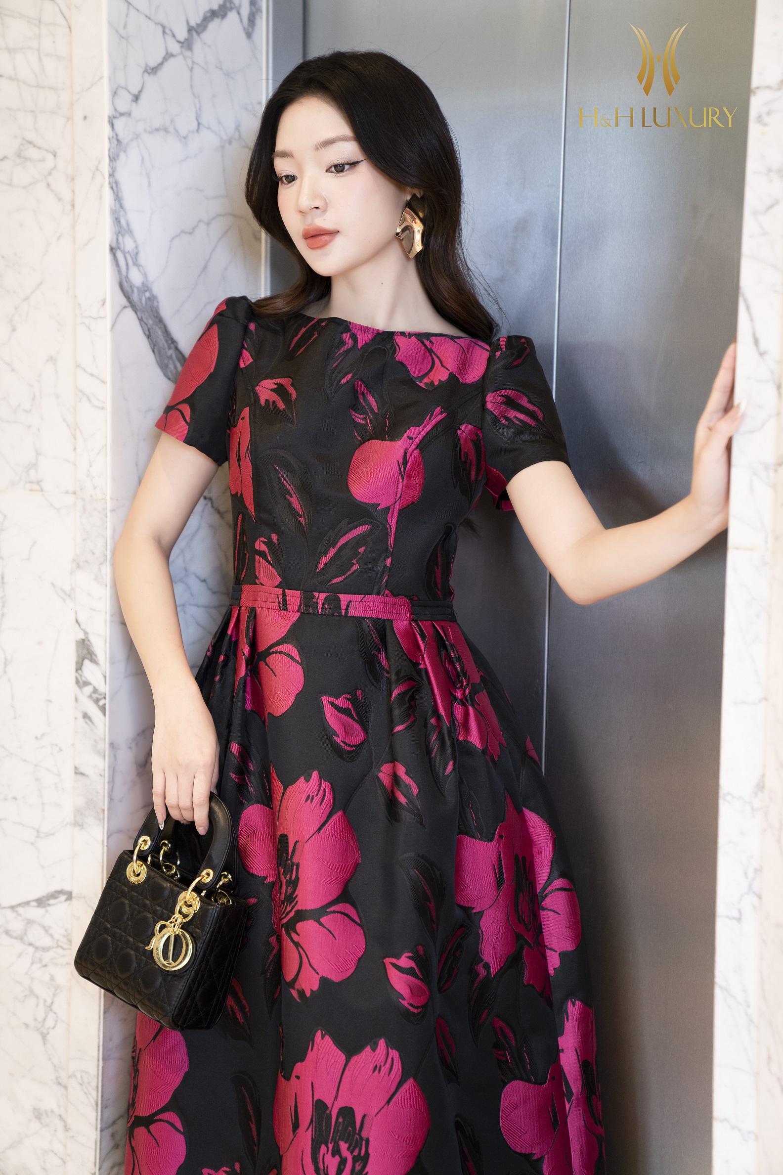 ĐẦM XÒE TIỆC GẤM HỒNG SEN CAO CẤP