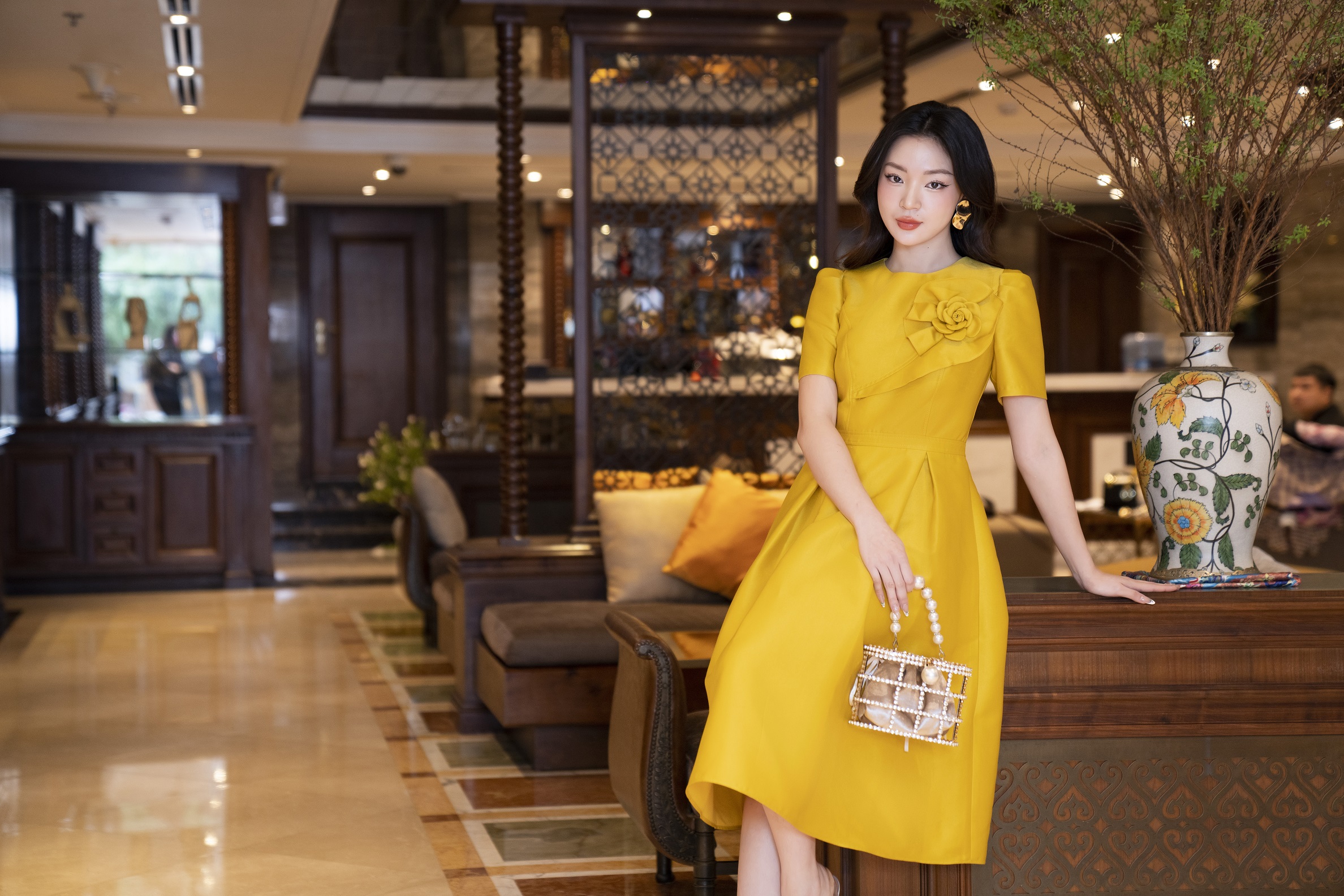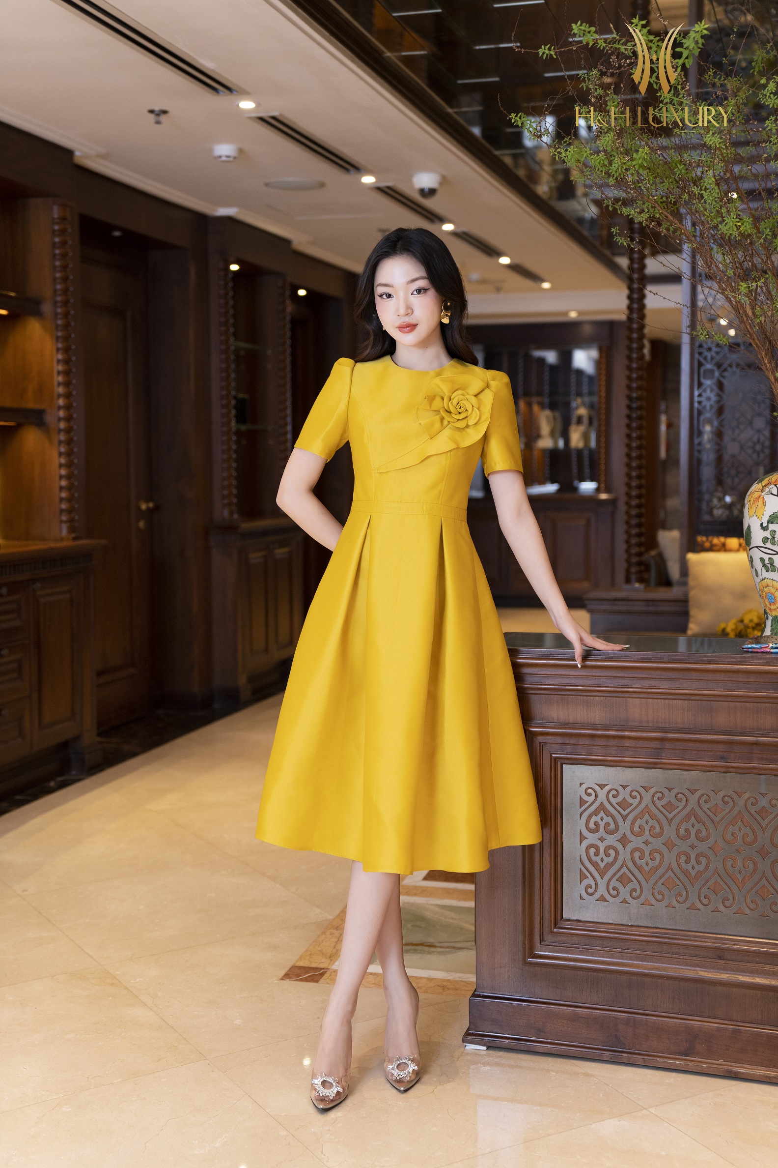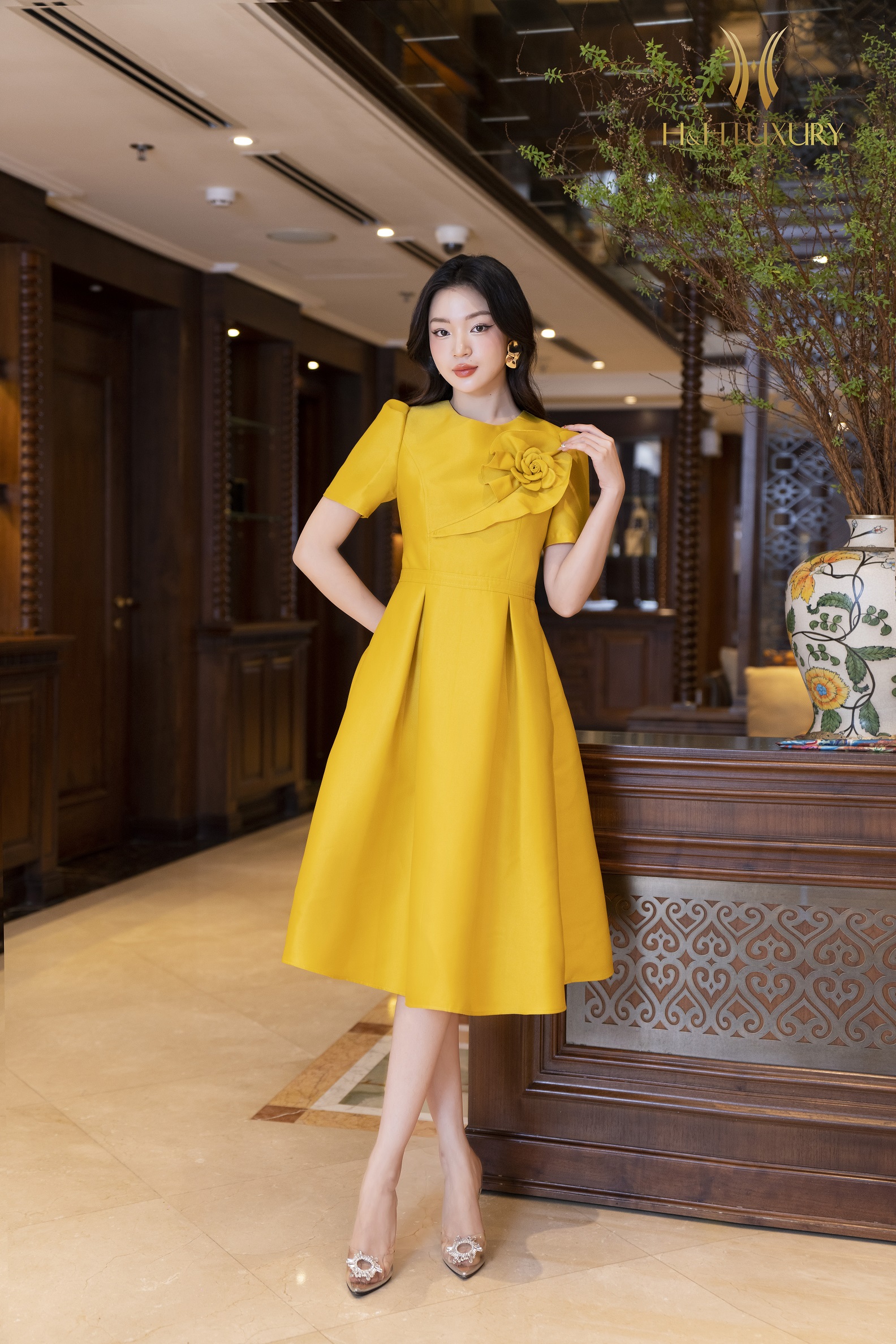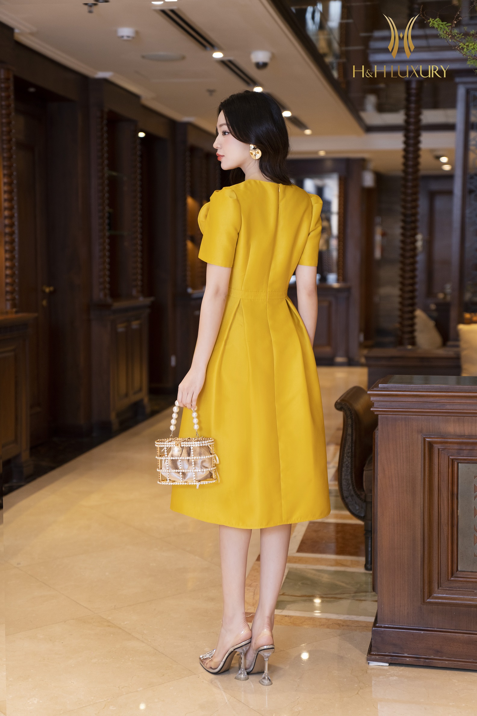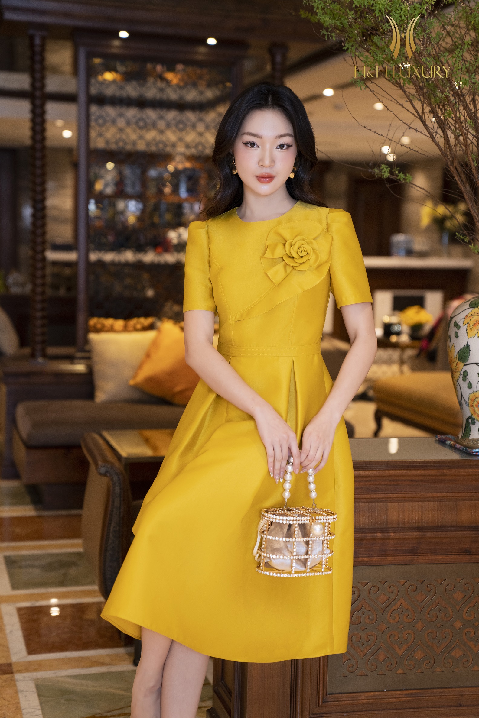 ĐẦM XÒE TIỆC VÀNG ĐÍNH HOA NGỰC