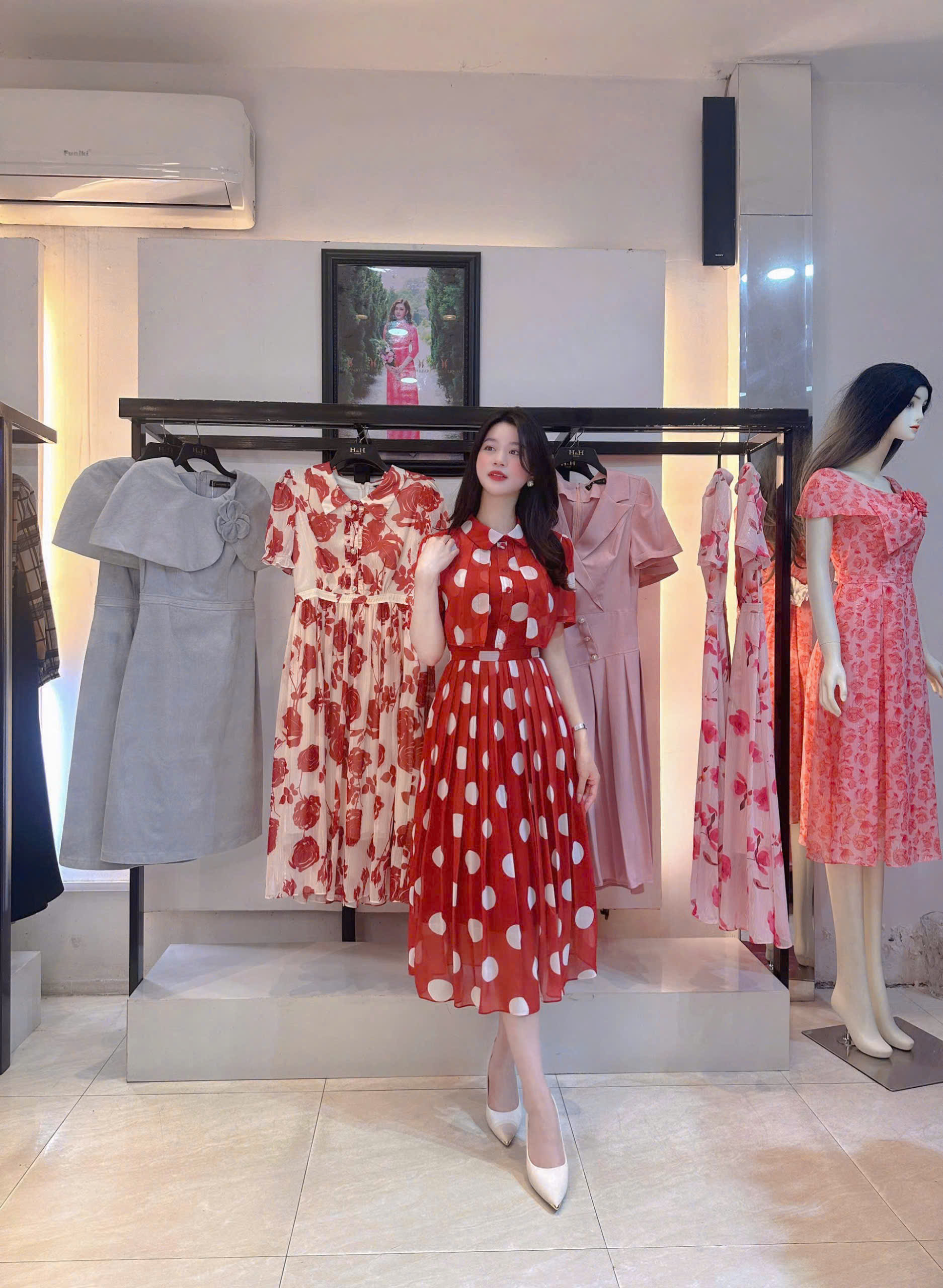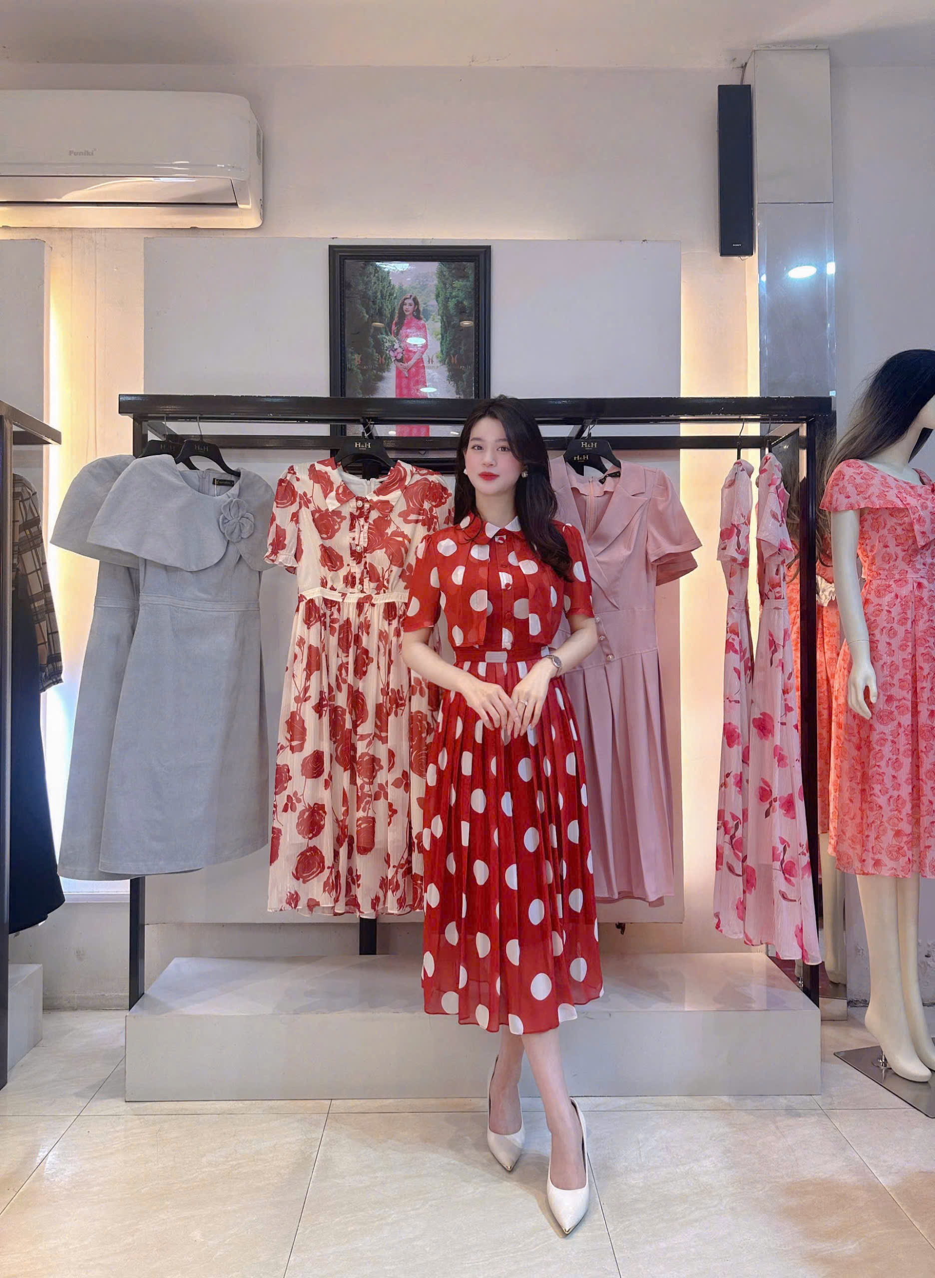 ĐẦM XÒE TƠ BI ĐỎ NHUNG CỔ SEN