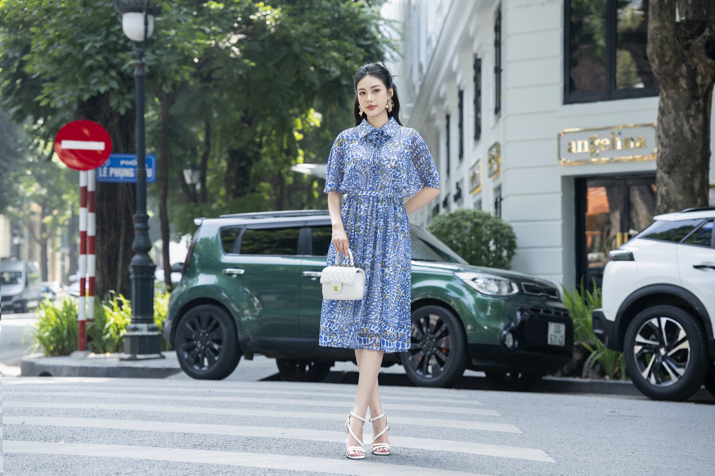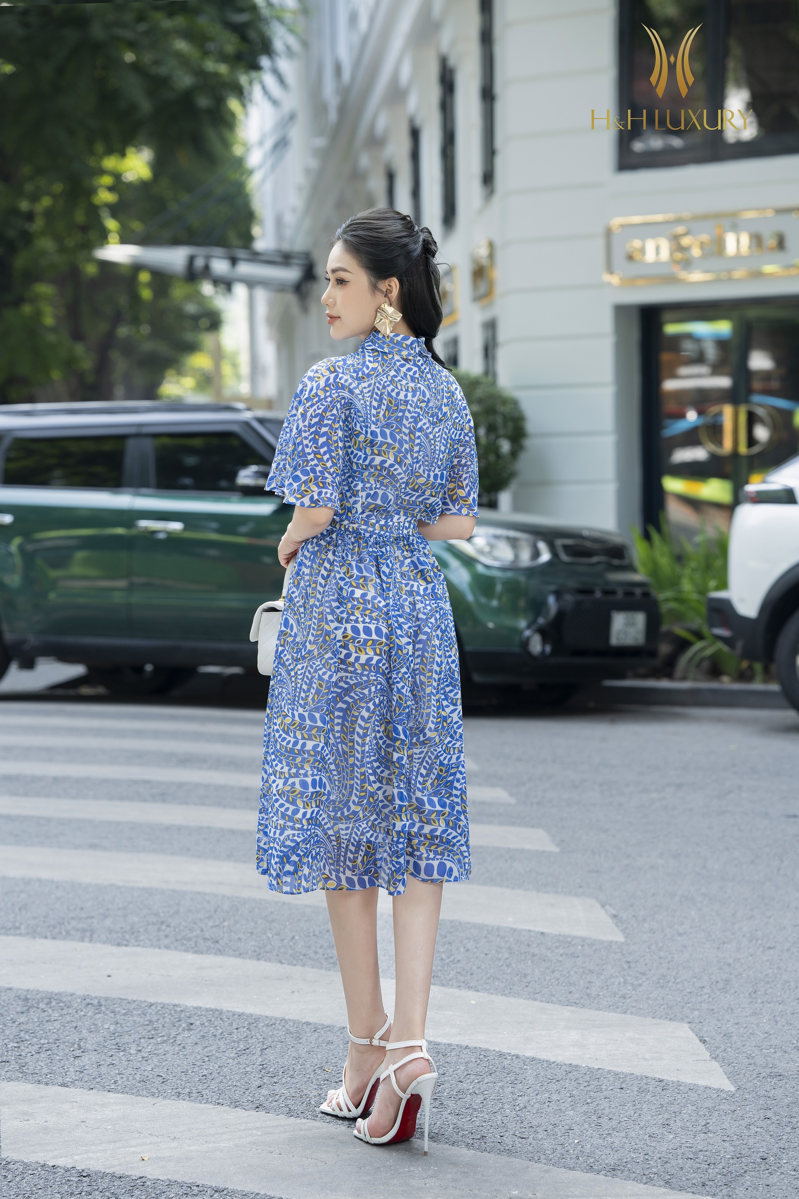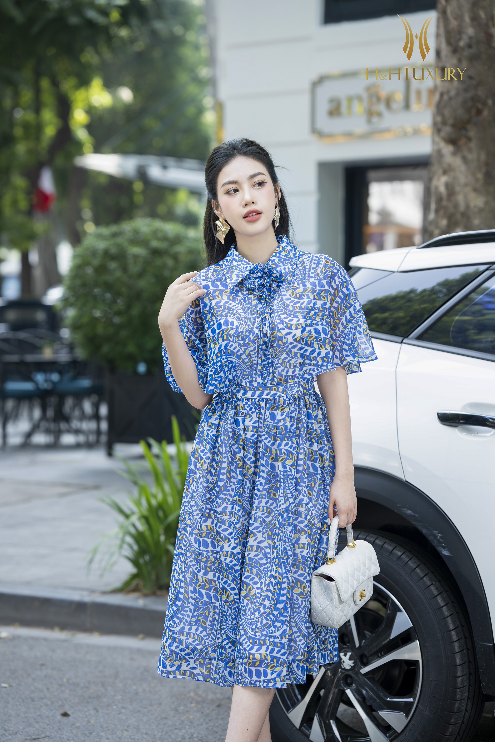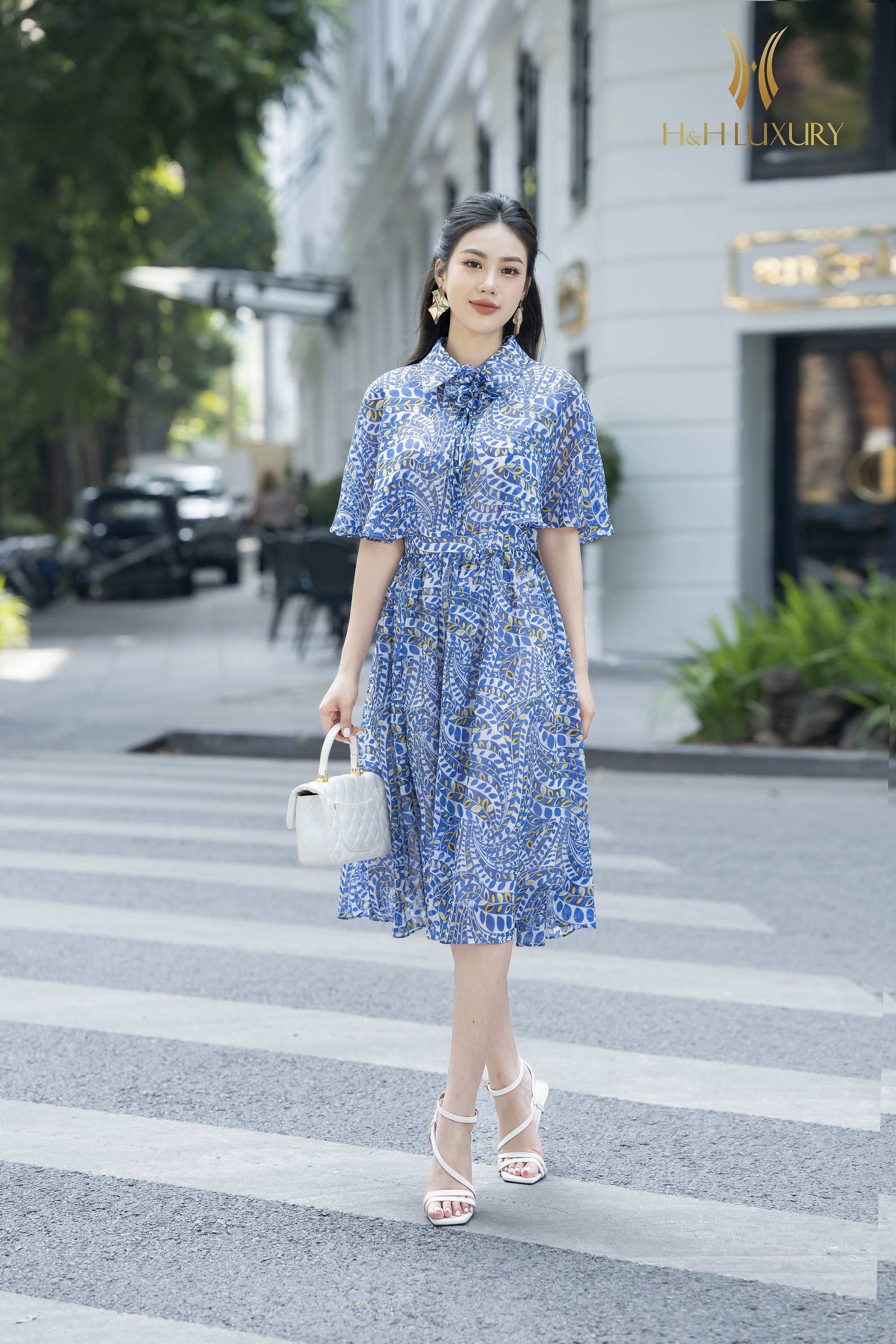 Đầm xòe tơ vân đính hoa