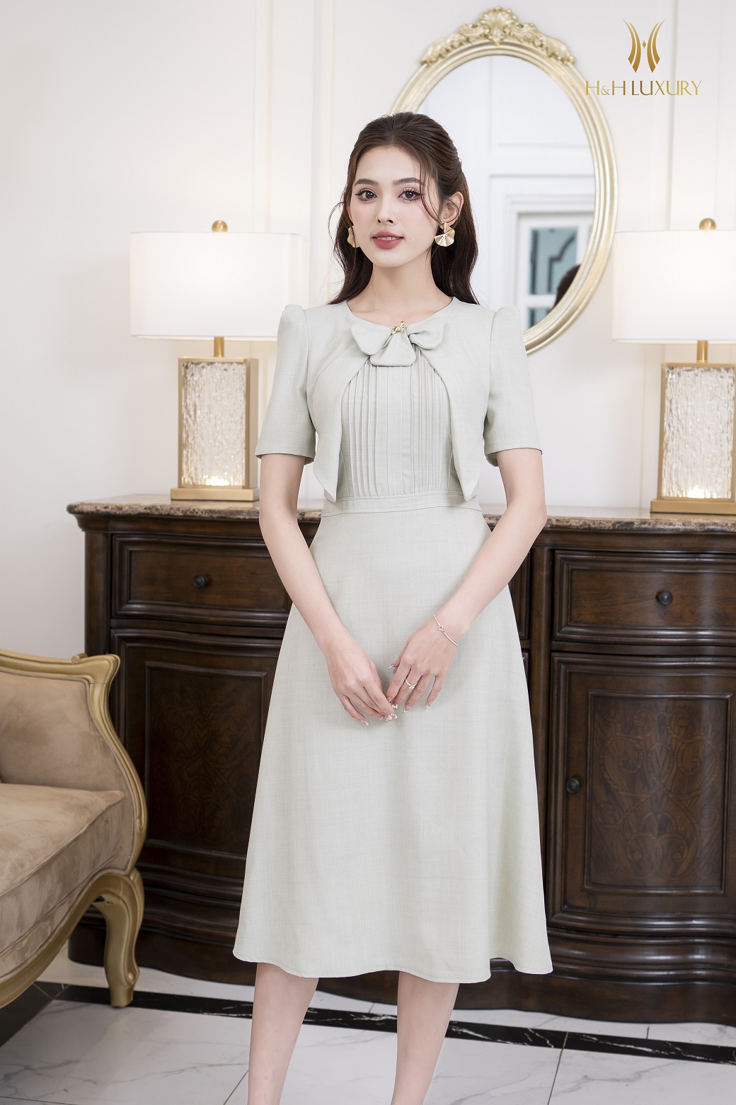 ĐẦM XÒE XANH PASSTEL TÀ NGỰC XẾP MÍ