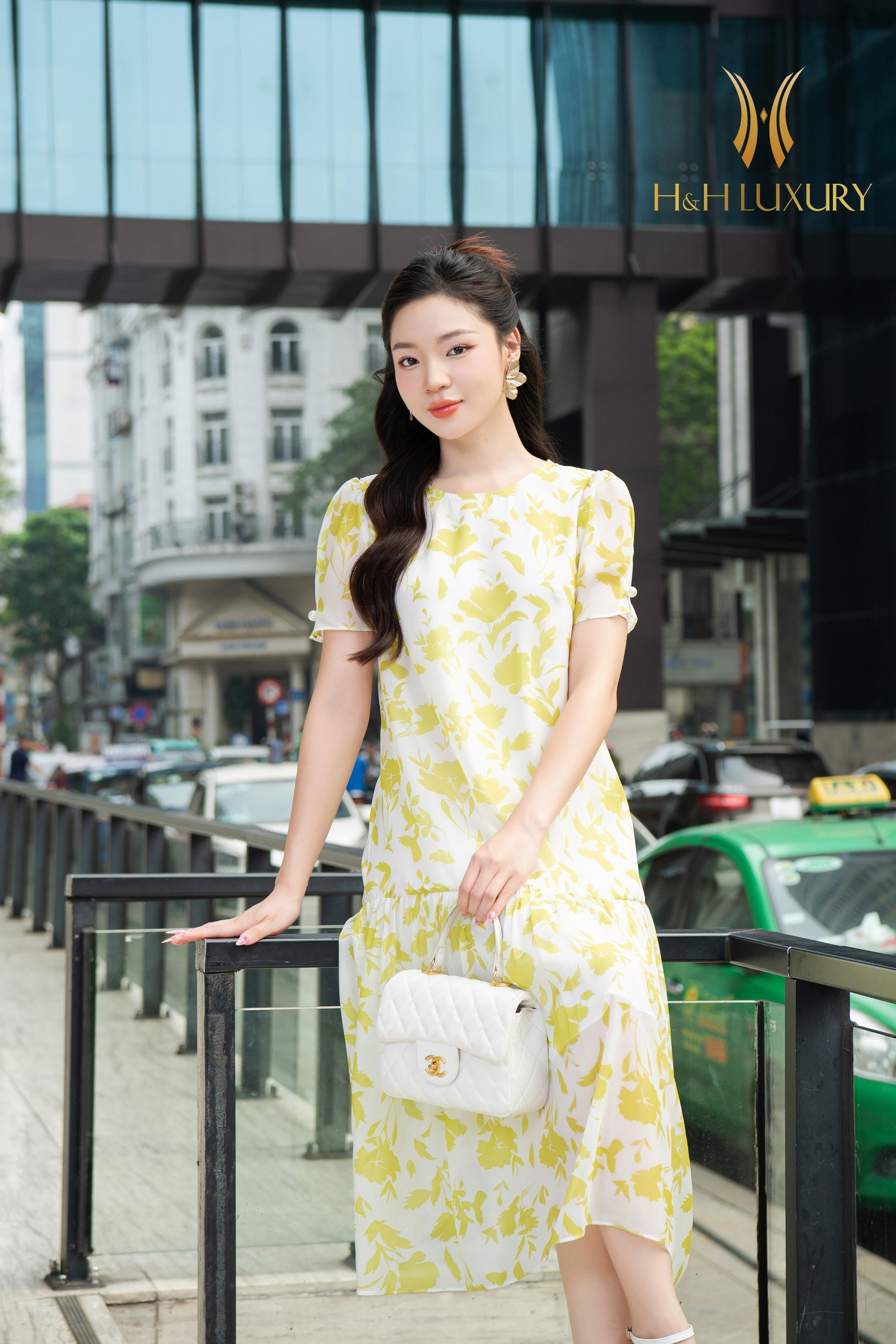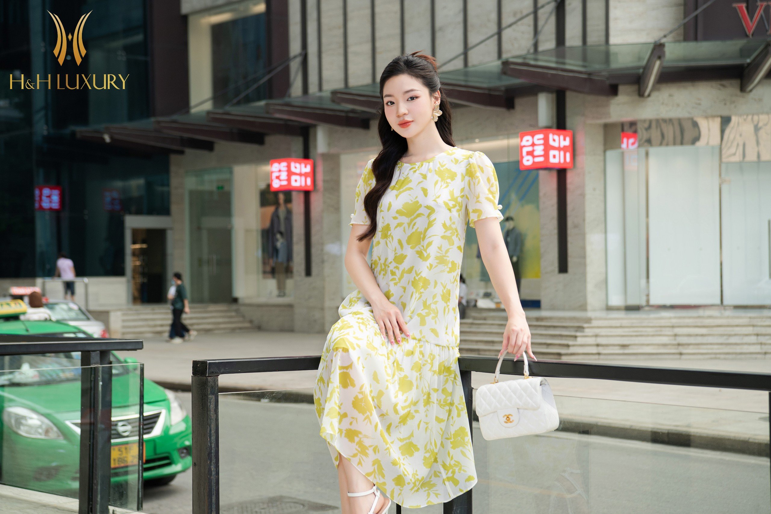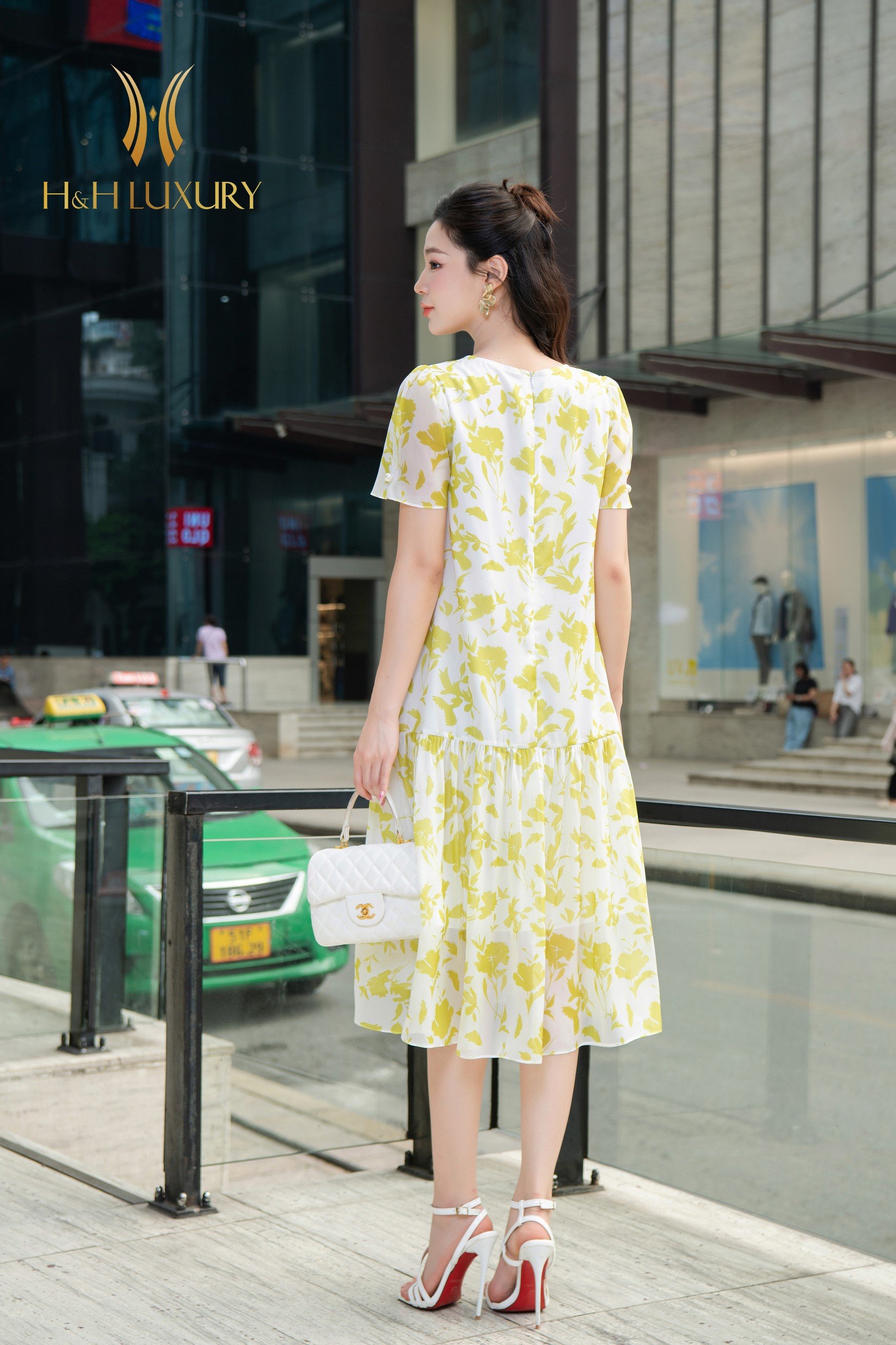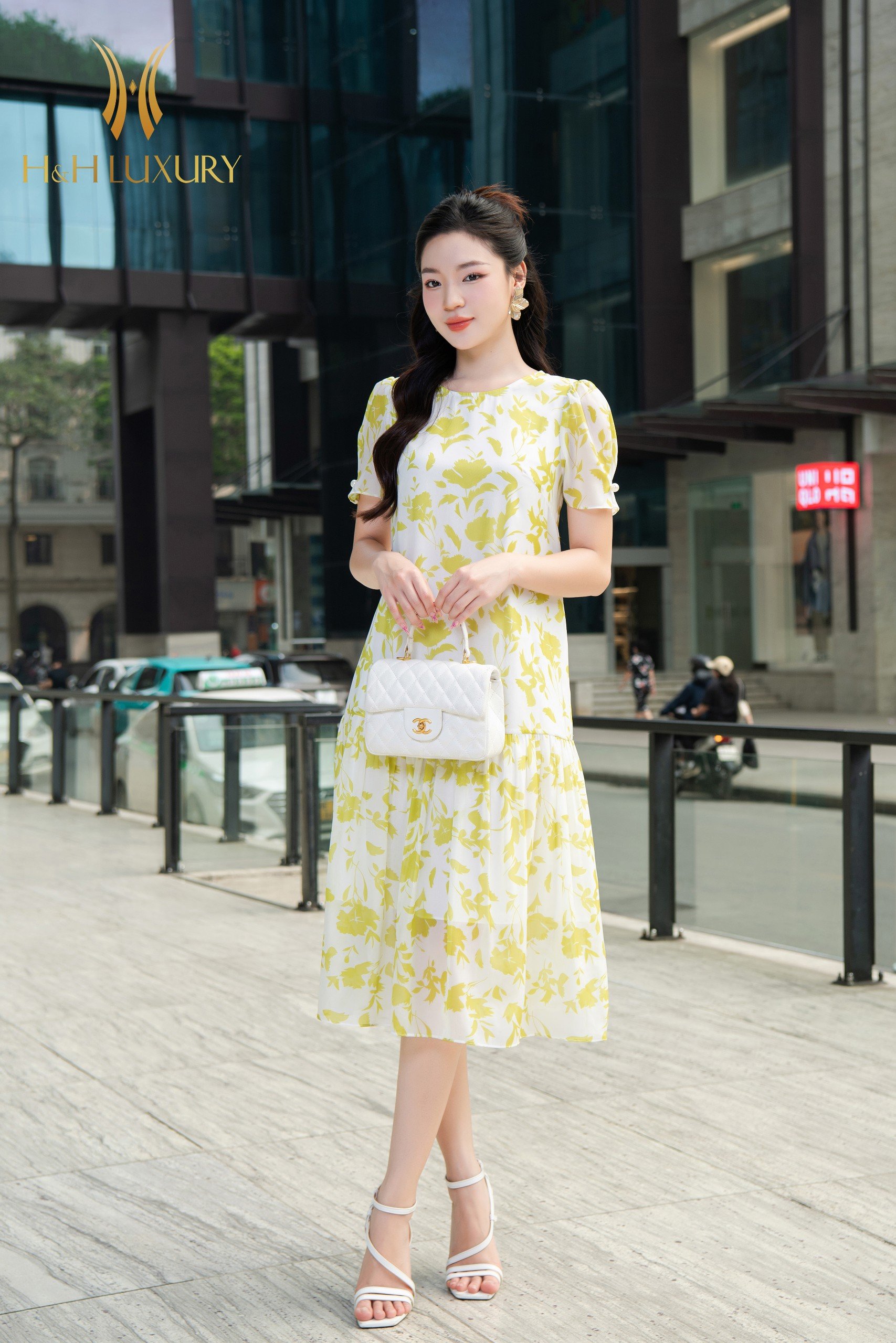 ĐẦM XUÔNG TƠ HOA VÀNG CHANH ĐÍNH TRAI TAY