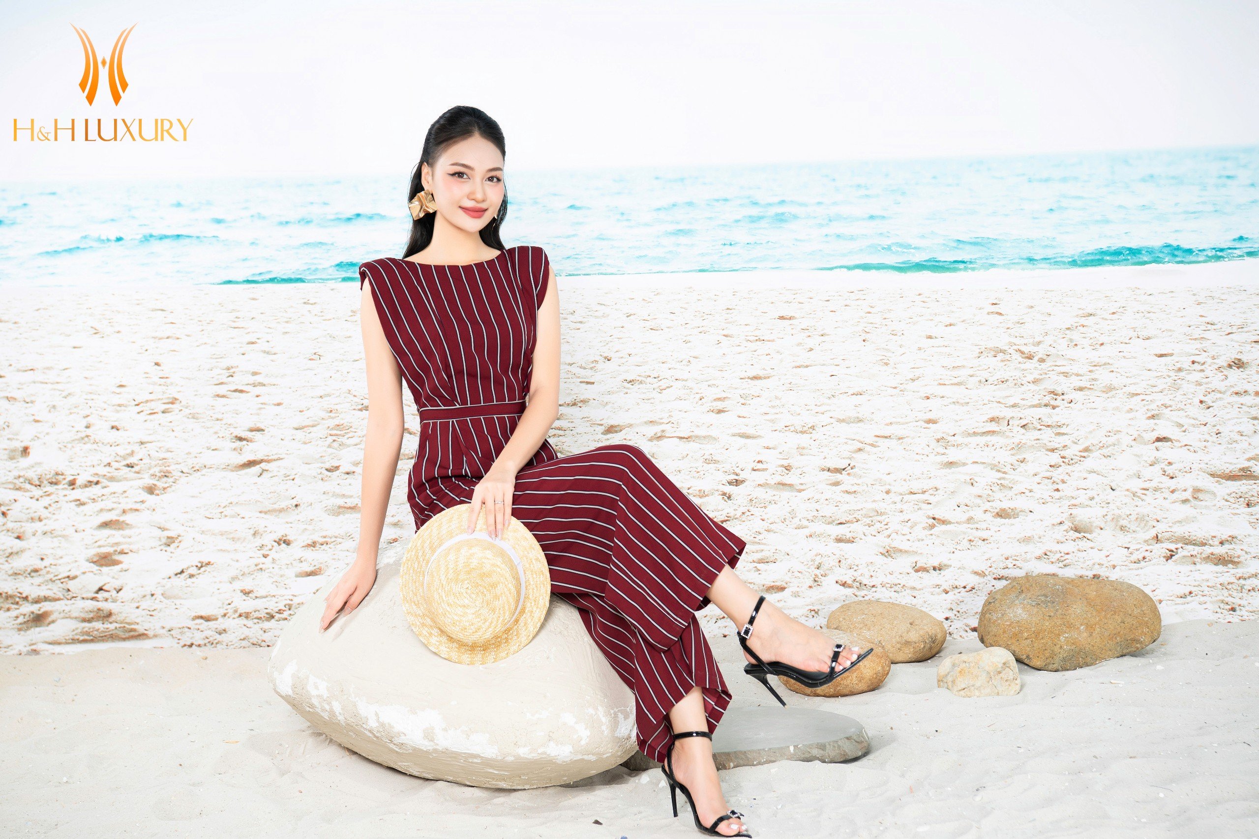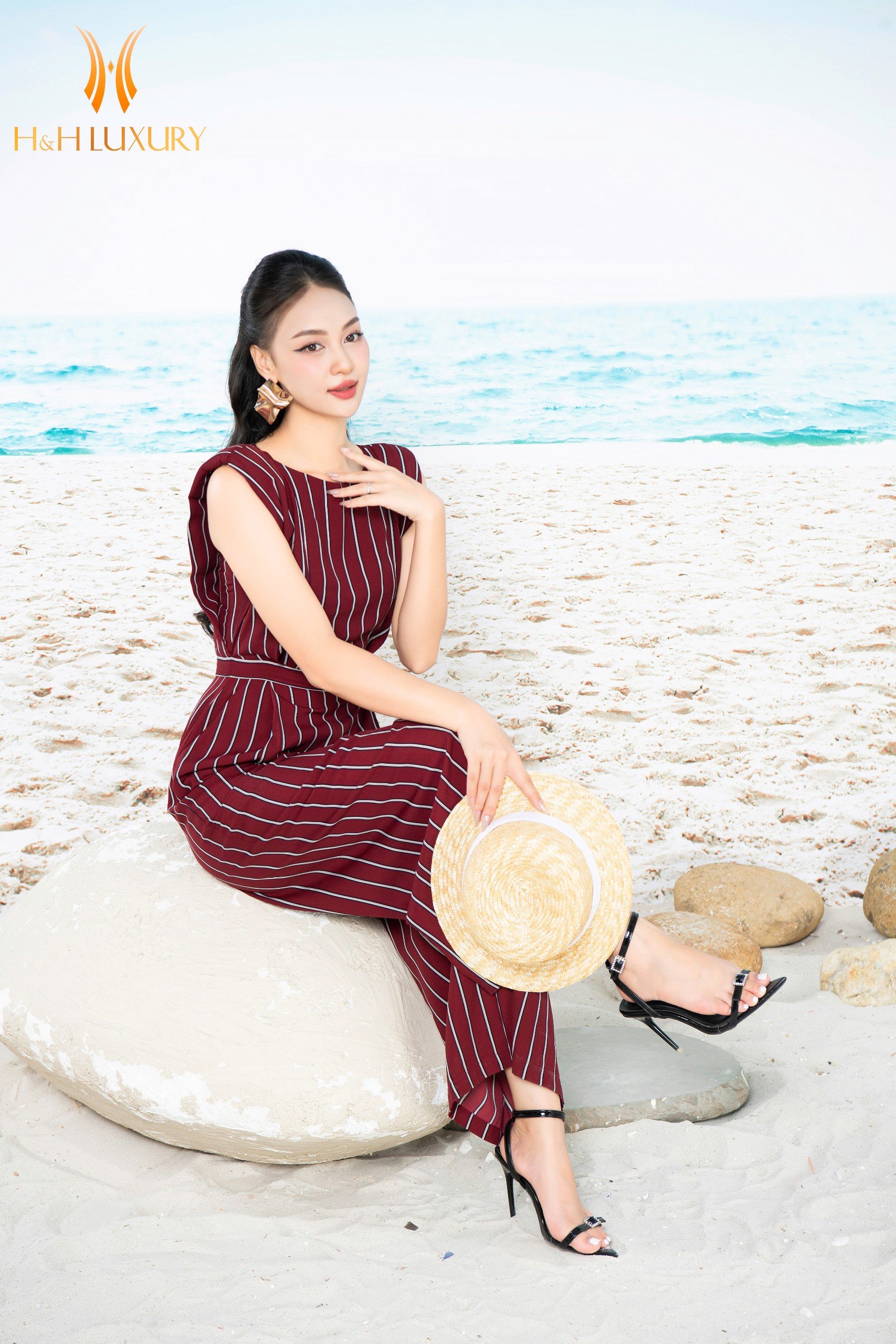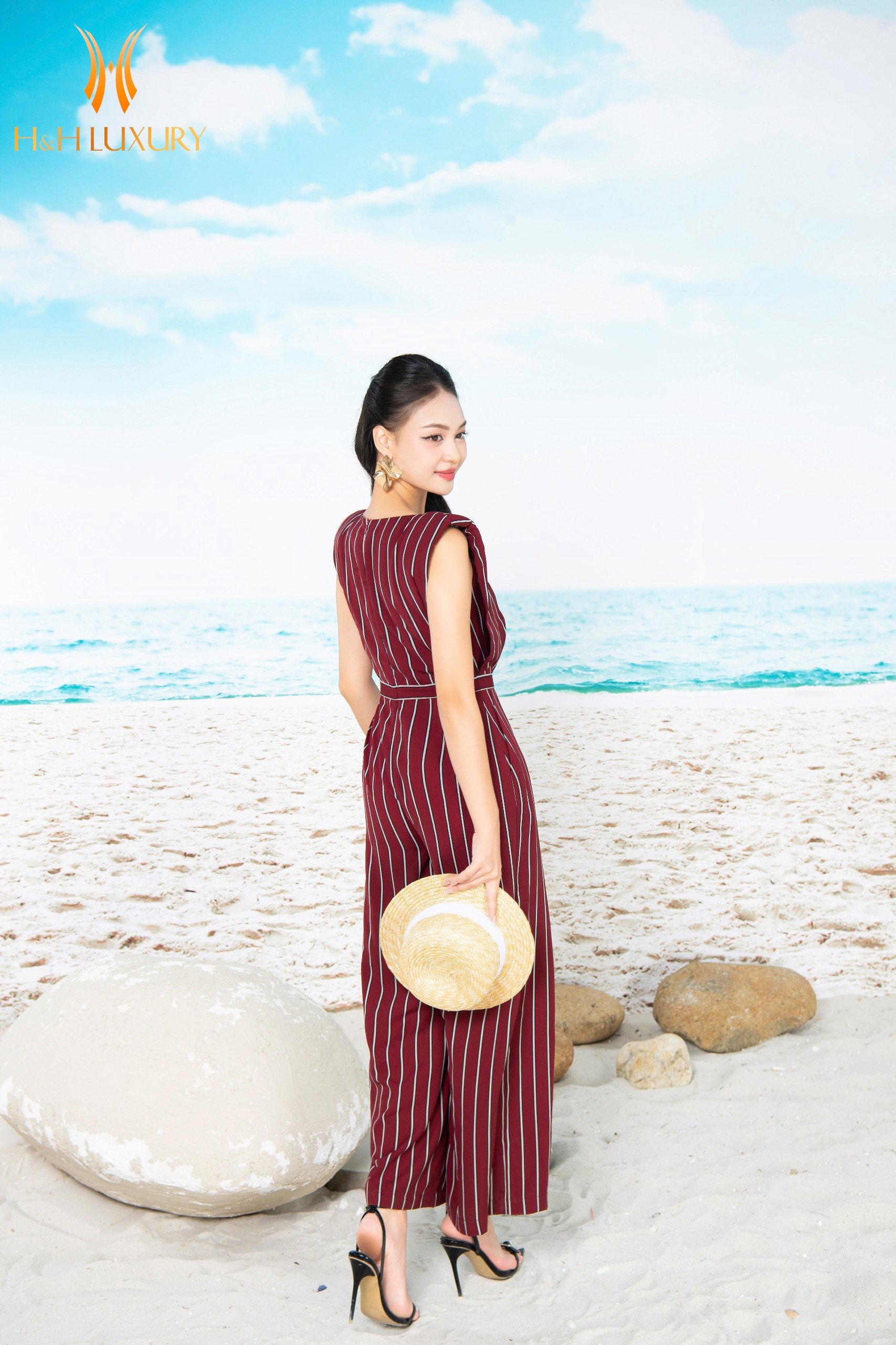 JUMSUIT KẺ ỐNG XUÔNG VAI CHỜM