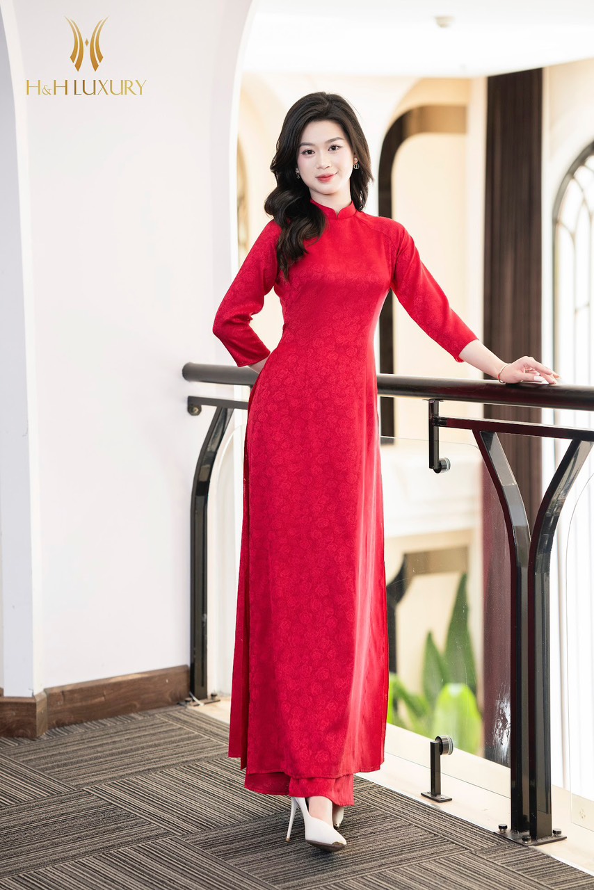 QUẦN ÁO DÀI GẤM HOA HỒNG ĐỎ NHUNG