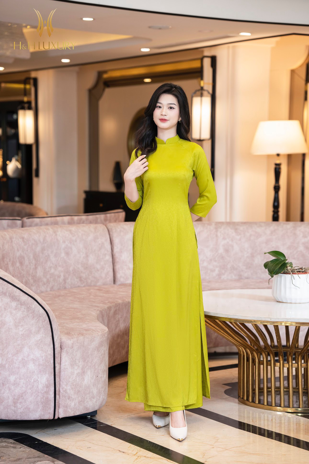 QUẦN ÁO DÀI GẤM HOA HỒNG XANH CỐM