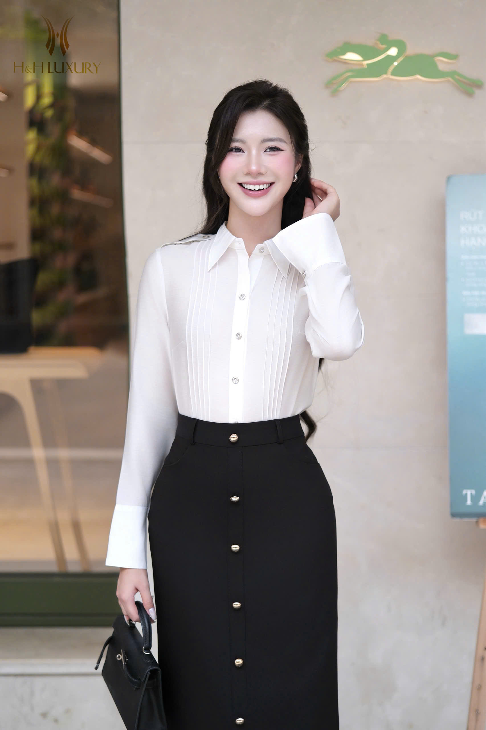 SƠ MI TRẮNG XẾP LY THÂN TẰM NHẬT